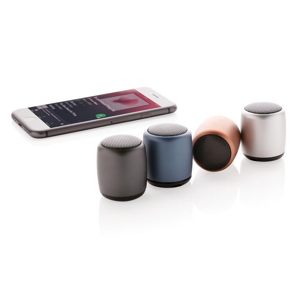 Głośnik bezprzewodowy 3W, BT 5.0, kieszonkowy rozmiar, wykonany z wytrzymałego aluminium, w pełni naładowany akumulator o pojemności 180 mAh pozwala na odtwarzanie muzyki do 3 godzin, zasięg do 10m, kabel do ładowania z TPE bez dodatku PVC w komplecie