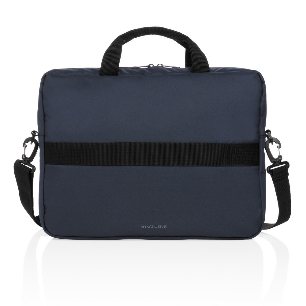 Torba na laptopa 15,6", klasyczny wygląd z dwoma szwami z przodu, posiada wiele kieszeni, dwa uchwyty oraz odpinany pasek na ramię, tkanina zewnętrzna i poszewka wewnętrzna wykonane z pochodzącego z recyklingu poliestru AWARE™ rPET, który został wykonany z butelek PET pochodzących z recyklingu z identyfikowalnym źródłem co pozwala na zaoszczędzenie dużych ilości wody i ma pozytywny wpływ na środowisko, nie zawiera PVC