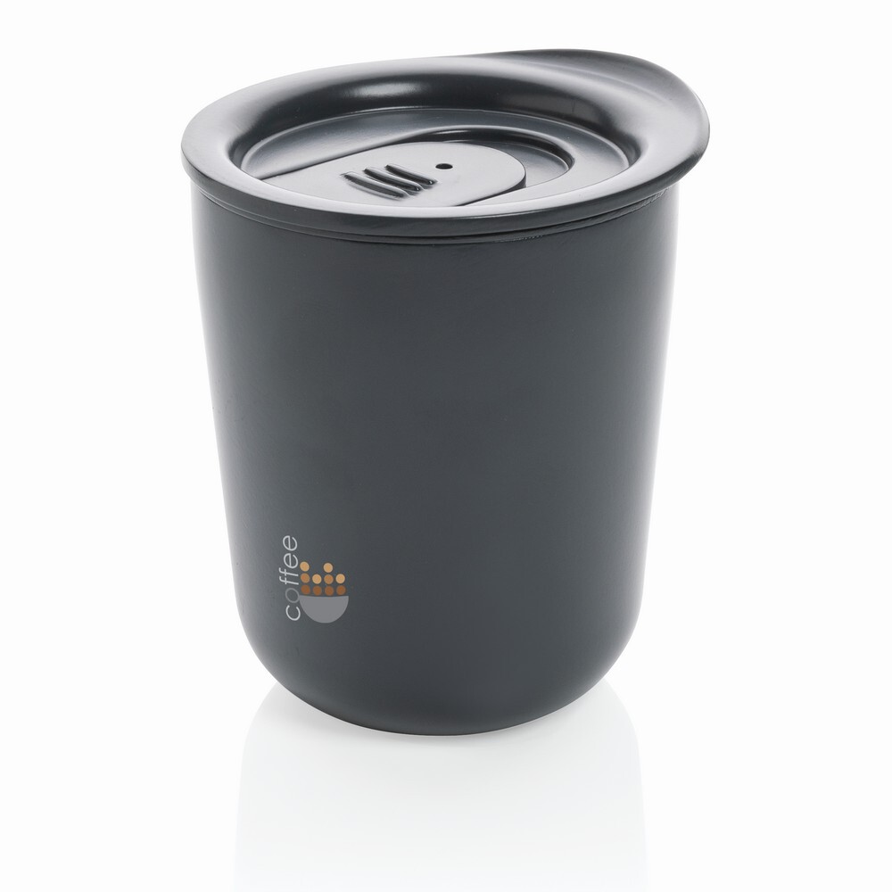 Antybakteryjny kubek podróżny 250 ml, wnętrze z PP, stal nierdzewna na zewnątrz, produkt został poddany działaniu przeciwbakteryjnego środka Biomaster, który zapewnia drugą linię obrony przed bakteriami (środek znajduje się w produkcie w związku z czym ochrona jest permanentna), bezpieczny i nieszkodliwy dla użytkownika, spełnia wymagania normy ISO 22196, produkt posiada również wbudowany znacznik Verimaster, który ma na celu udowodnienie dodatku środka Biomaster, w pudełku podarunkowym z opisem Biomaster, nie zawiera BPA