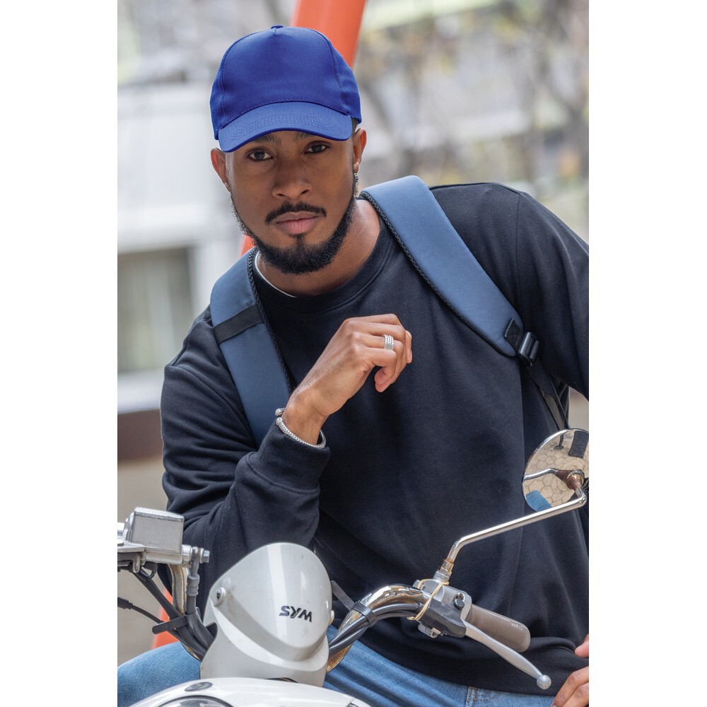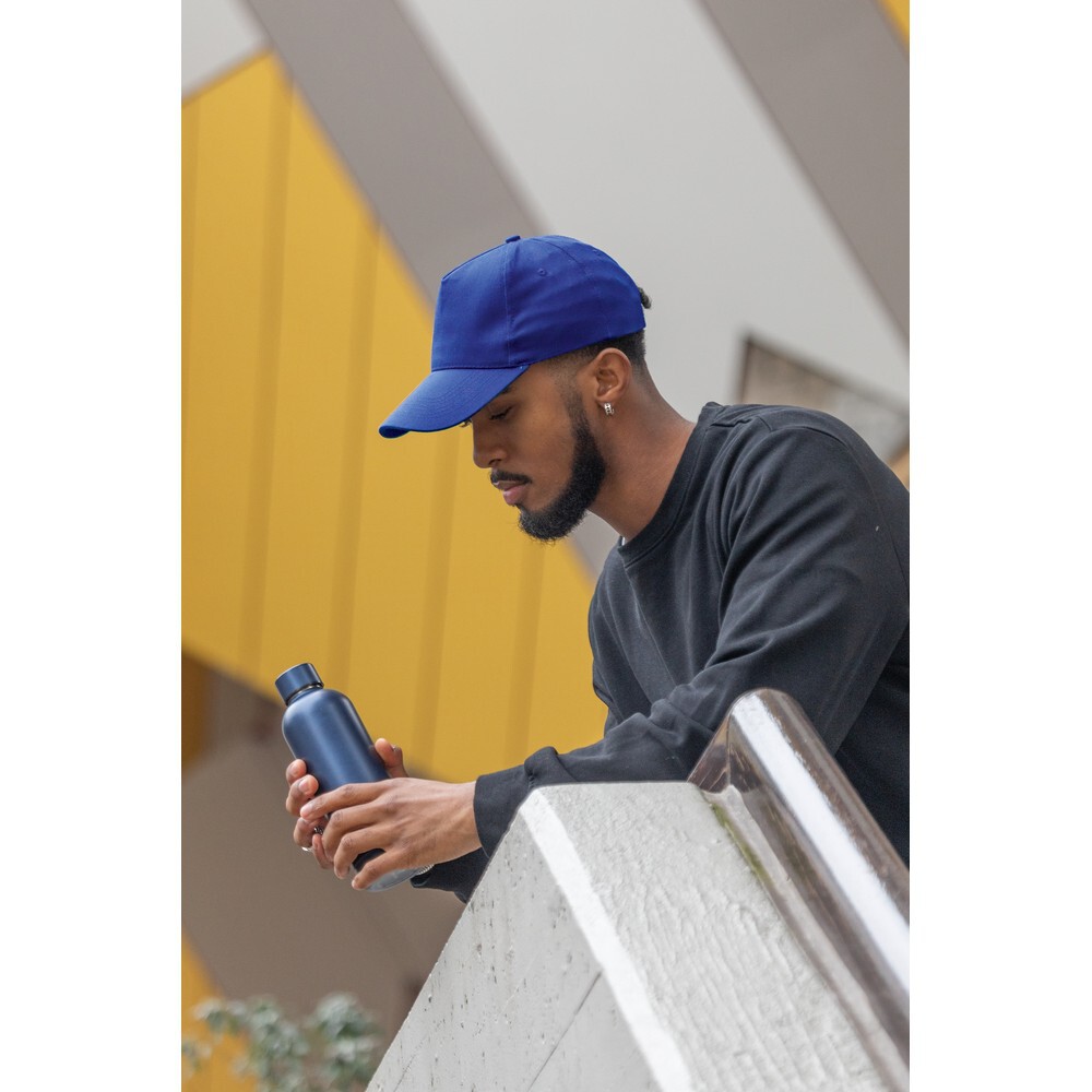 Czapka z daszkiem, 5 paneli, otwory wentylacyjne, metalowa klamra, wykonana z bawełny o gramaturze 280 g/m2 pochodzącej z recyklingu, dzięki czemu zaoszczędzonych zostało 387 litrów wody, dzięki zastosowaniu technologii AWARE™ wykorzystane włókna bawełny są identyfikowalne z pochodzenia, 2% wpływów z każdego sprzedanego produktu z kolekcji Impact jest przekazywane na rzecz Water.org