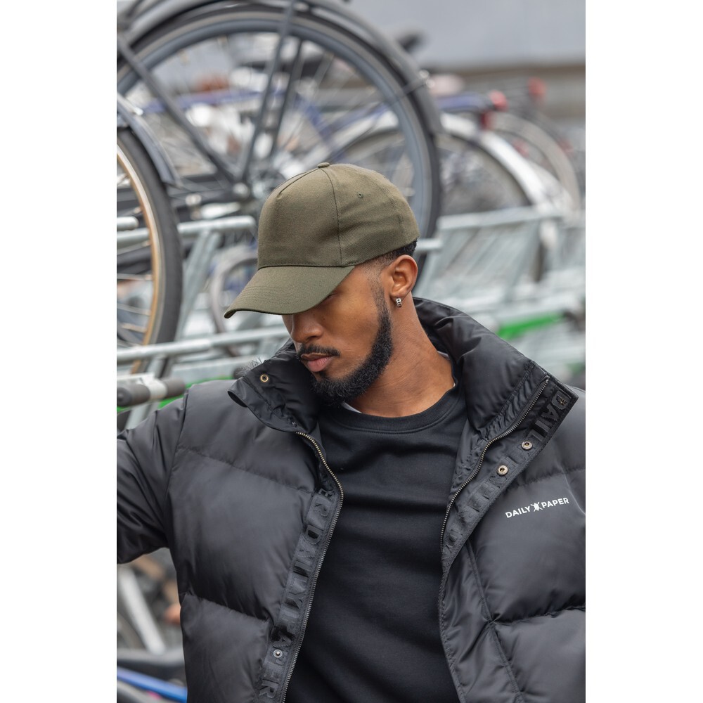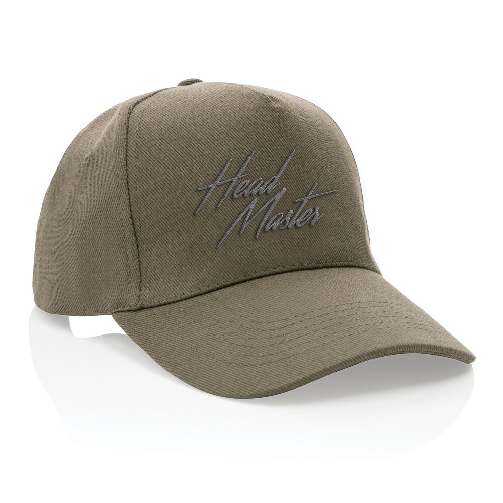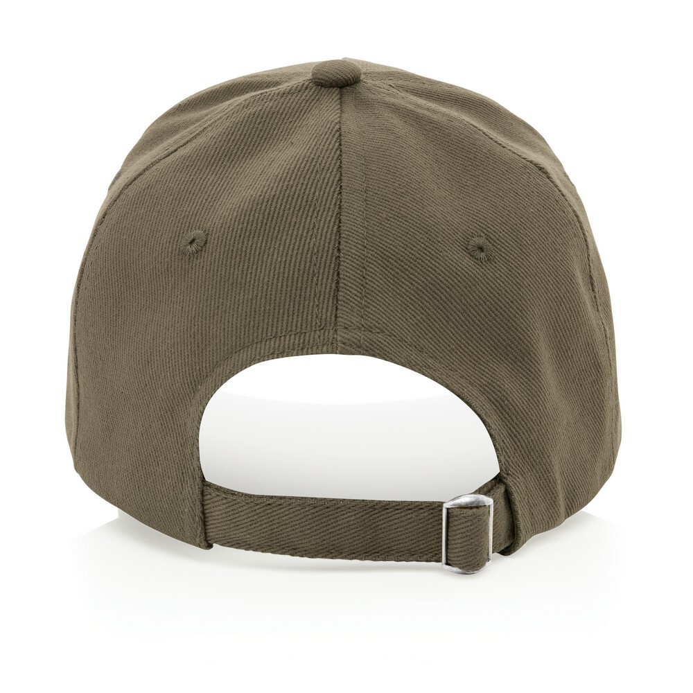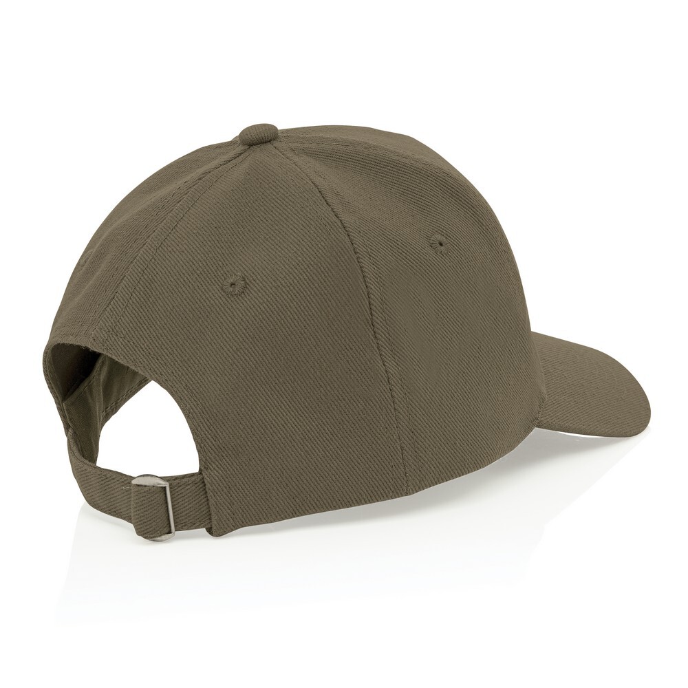 Czapka z daszkiem, 5 paneli, otwory wentylacyjne, metalowa klamra, wykonana z bawełny o gramaturze 280 g/m2 pochodzącej z recyklingu, dzięki czemu zaoszczędzonych zostało 387 litrów wody, dzięki zastosowaniu technologii AWARE™ wykorzystane włókna bawełny są identyfikowalne z pochodzenia, 2% wpływów z każdego sprzedanego produktu z kolekcji Impact jest przekazywane na rzecz Water.org