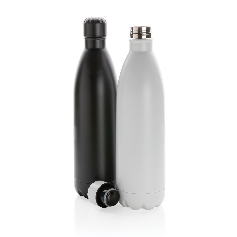 Butelka sportowa 1l, podwójne ścianki ze stali nierdzewnej z próżnią pomiędzy, utrzymuje temperaturę napojów ciepłych do 5 godzin oraz zimnych do 15 godzin, pasuje do większości uchwytów na kubki
