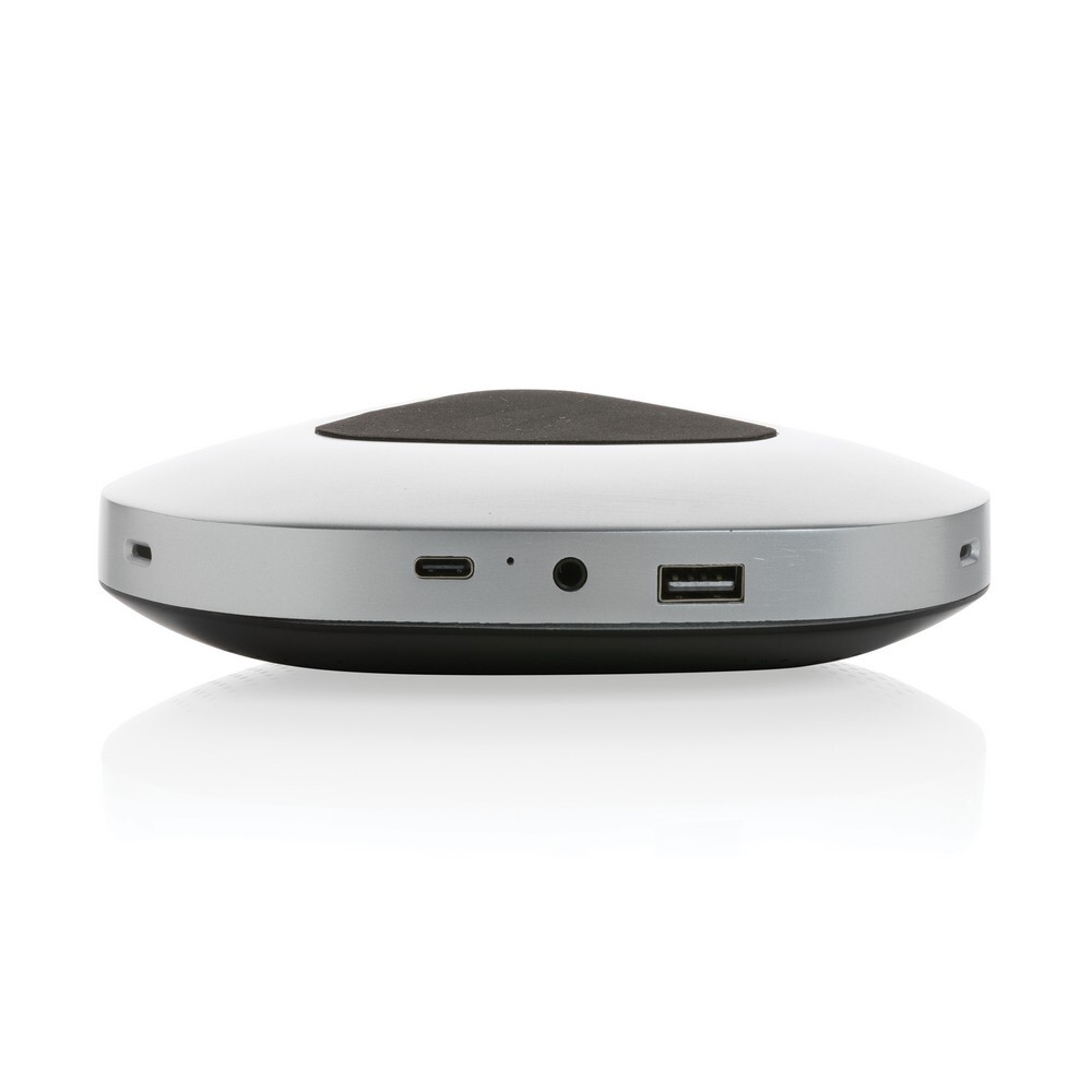 Bezprzewodowy głośnik konferencyjny BT 5.1, 2 wbudowane mikrofony wysokiej jakości do płynnych rozmów, wbudowany akumulator o pojemności 1200 mAh pozwala na użytkowanie do 6 godzin na jednym ładowaniu, przycisk wyciszania oraz kontroli głośności, kabel USB typu C o długości 100 cm w komplecie