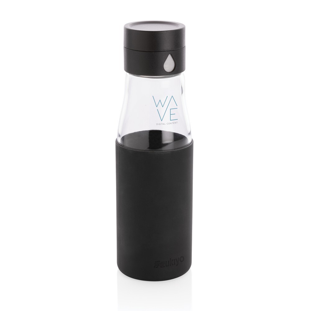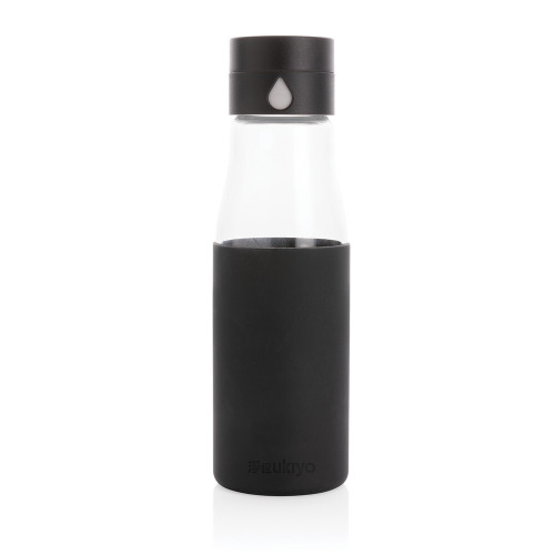Szklana butelka 650 ml Ukiyo, monitorująca ilość wypitej wody / Czarny