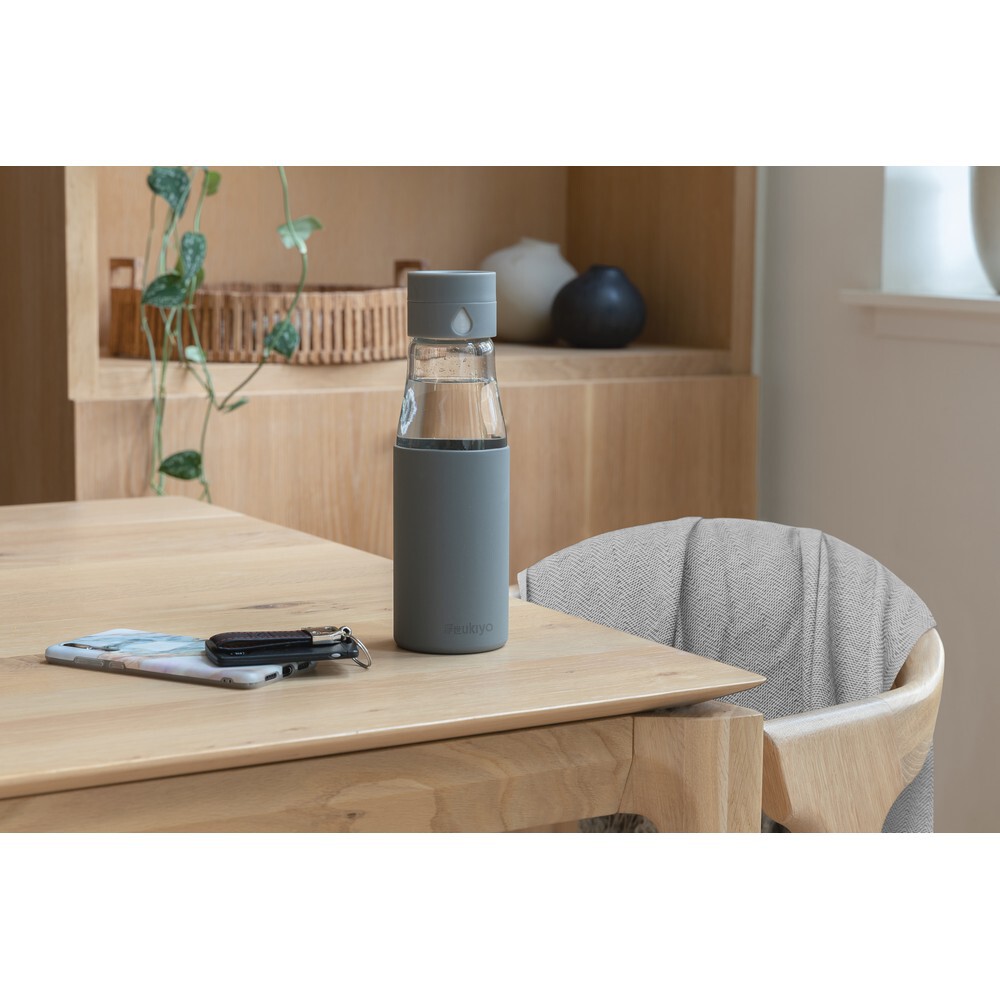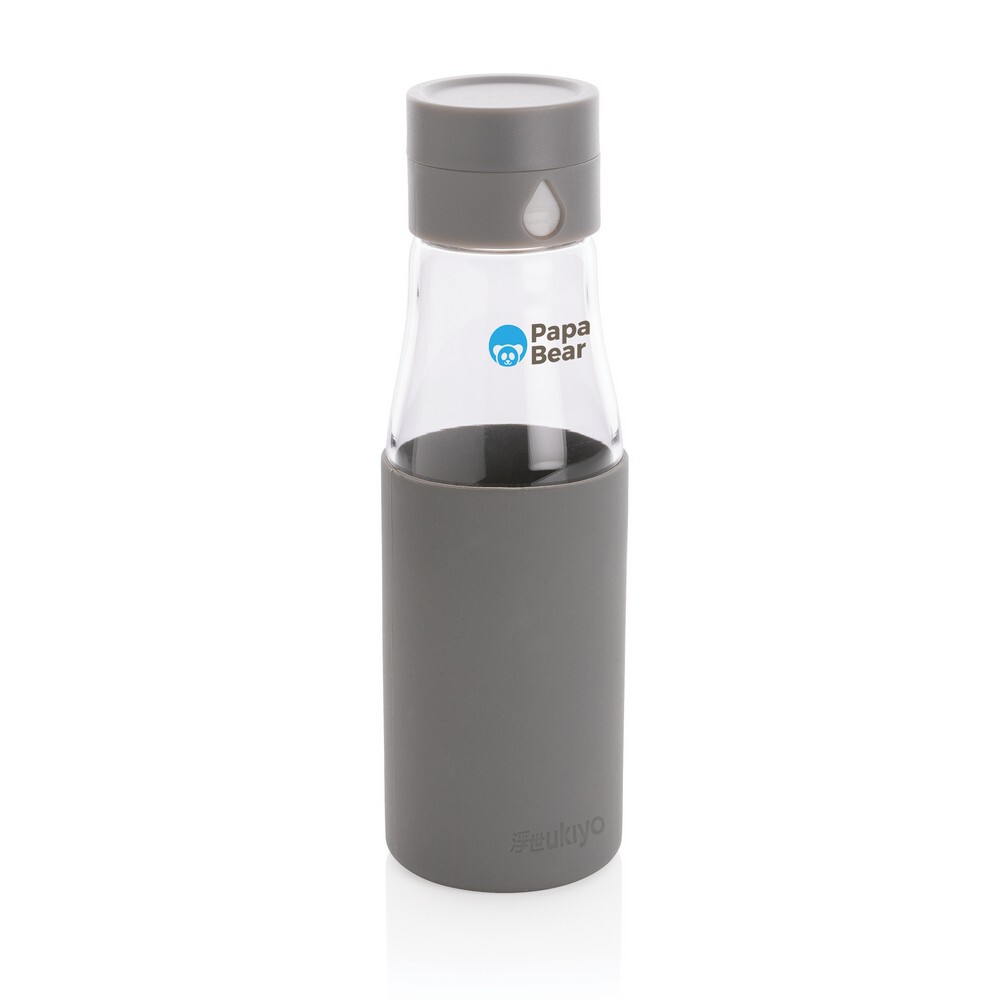 Szklana butelka 650 ml Ukiyo, monitorująca ilość wypitej wody / Szary