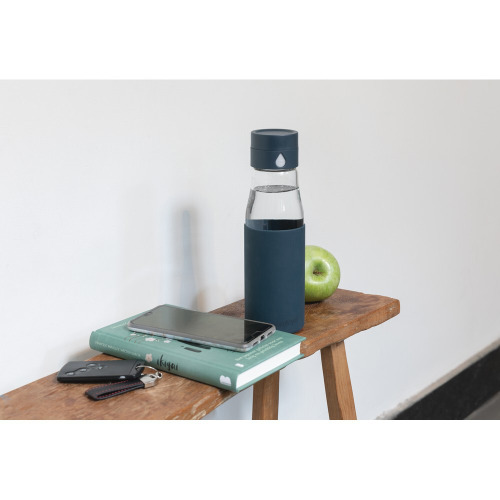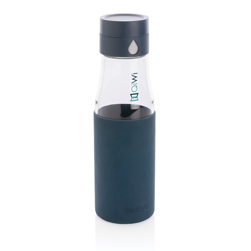 Szklana butelka 650 ml Ukiyo, monitorująca ilość wypitej wody / Niebieski