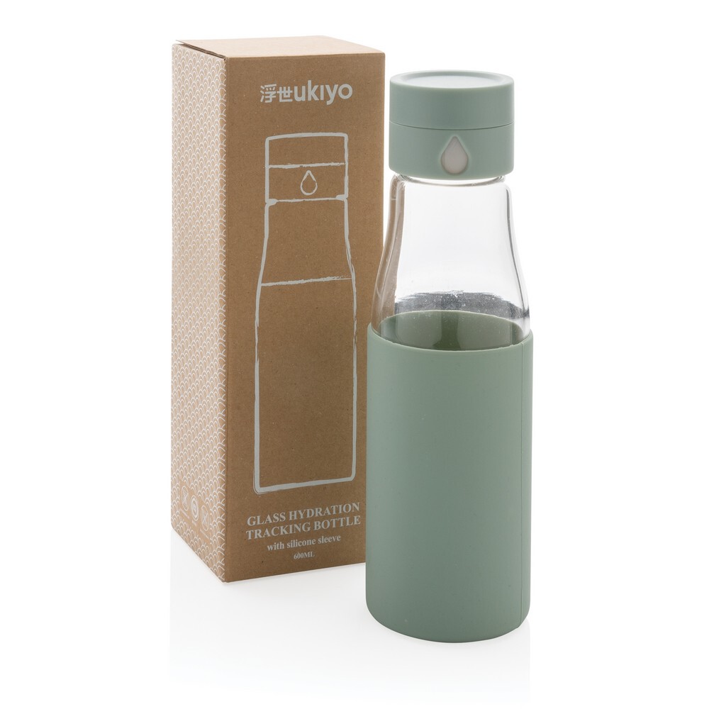 Szklana butelka 650 ml Ukiyo, monitorująca ilość wypitej wody / Zielony