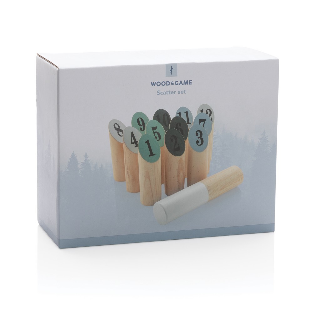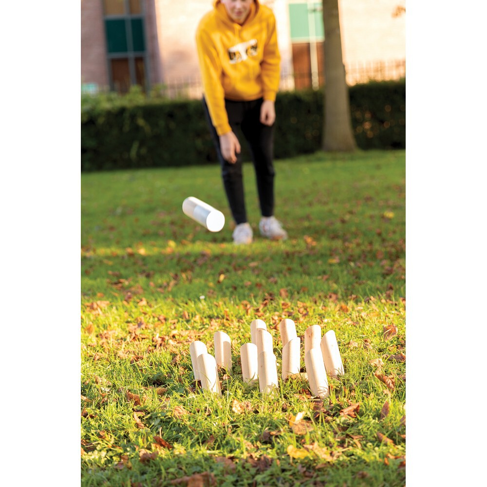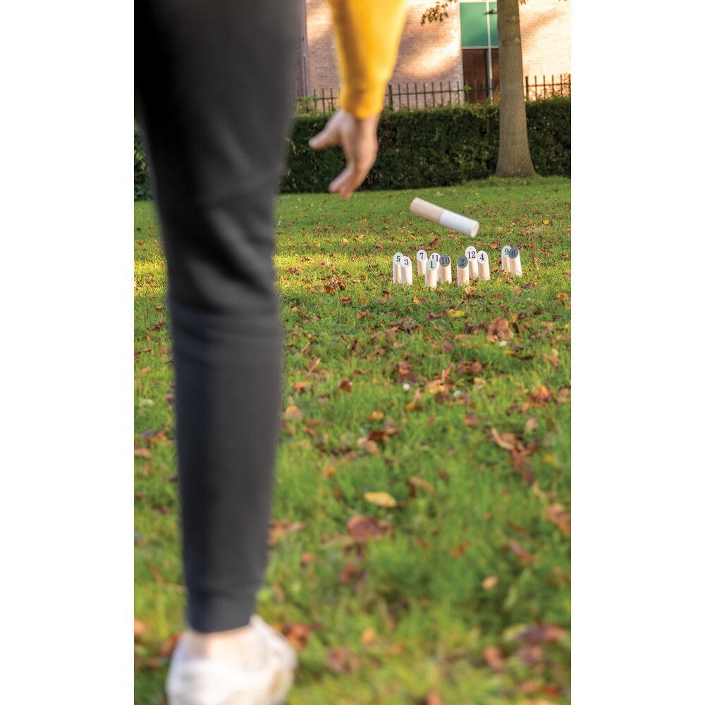 Drewniana gra taktyczna, celem gry jest rzut w 12 drewnianych kołków w taki sposób aby zdobyć dokładnie 50 punktów, po każdym rzucie kołki ustawiane są do pionu, zestaw zawiera 12 kołków oraz kij do rzucania, wykonane z drewna sosnowego, bawełniany pokrowiec oraz instrukcja z zasadami gry w komplecie