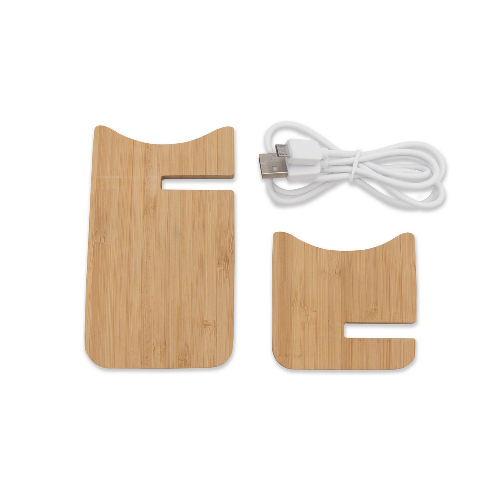 Składana bambusowa ładowarka bezprzewodowa B'RIGHT 10W, stojak na telefon, działa z telefonami posiadającymi możliwość ładowania indukcyjnego, wejście micro USB DC 5V/2A, 9V/1.67, kabel micro USB w komplecie