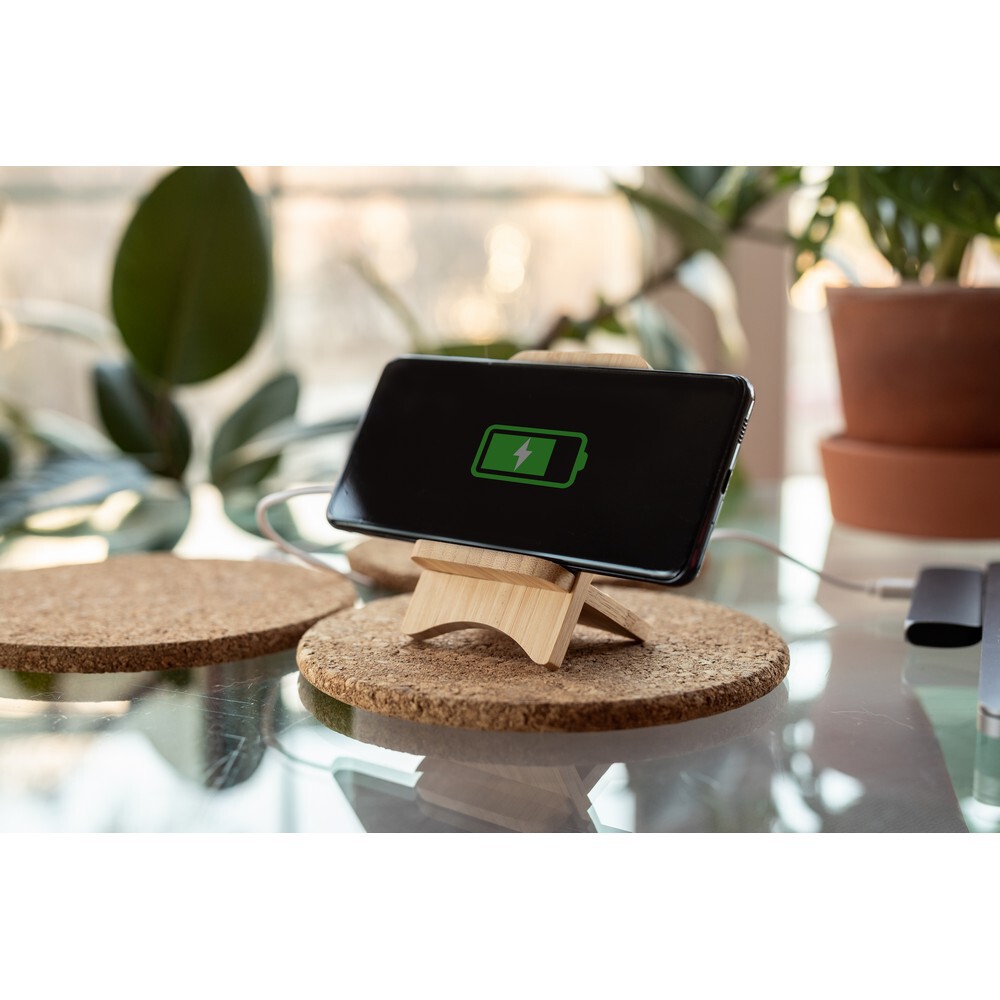Składana bambusowa ładowarka bezprzewodowa 10W B'RIGHT, stojak na telefon | Barbra /