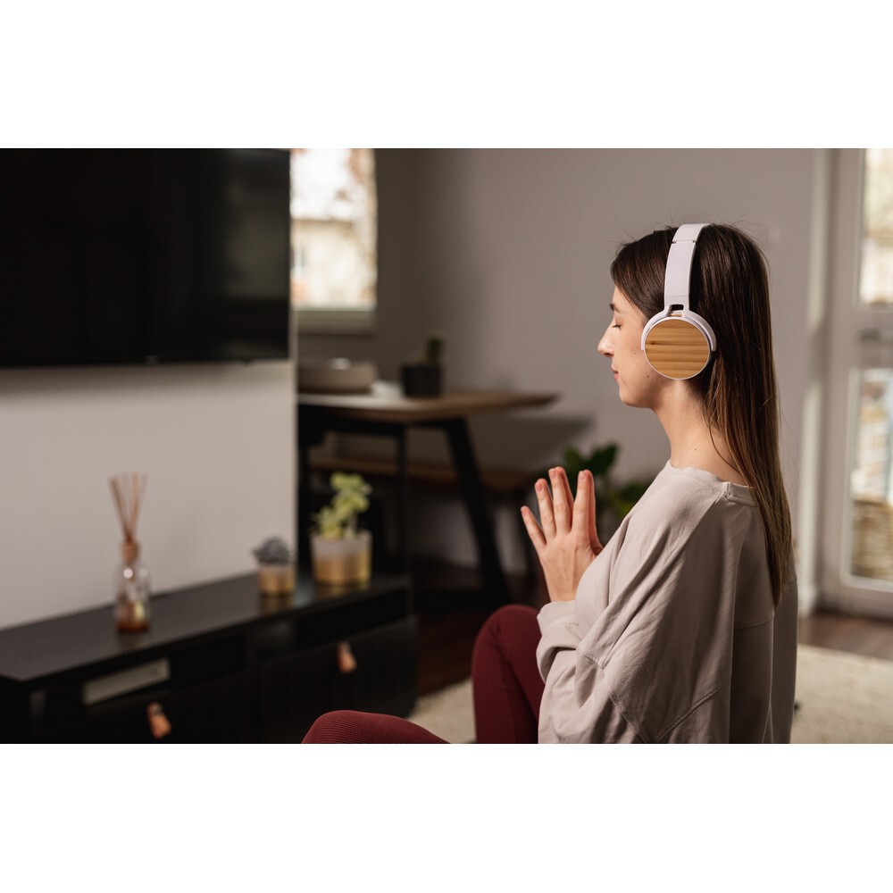 Składane bezprzewodowe słuchawki nauszne, bambusowe elementy | Hollie / Biały