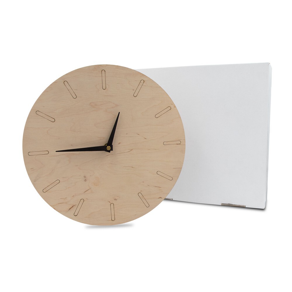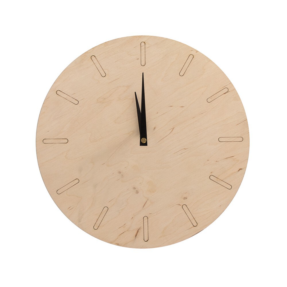 Zegar ścienny ze sklejki, wyprodukowany w Polsce