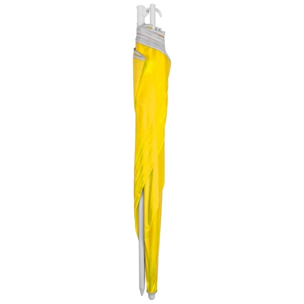Parasol plażowy zapewni Ci cień i ochronę przed słońcem w każdym miejscu. Wykonany z wytrzymałego poliestru i metalu, parasol ten jest zaprojektowany z myślą o prostocie i wygodzie użytkowania. Dzięki możliwości regulacji wysokości, parasol można dostosować do swoich potrzeb, co pozwala na maksymalny komfort podczas odpoczynku na plaży, w ogrodzie czy na tarasie. Jest odporny na warunki atmosferyczne. Średnica pręta wynosi 2 cm, co zapewnia stabilność i wytrzymałość konstrukcji. Nity parasola wykonane są ze stali nierdzewnej, co gwarantuje odporność na rdzę i wpływa dobrze na trwałość parasola. Parasol ma rozmiar Ø 150 (szerokość parasola) x 173 cm (maksymalna wysokość regulacji), co zapewnia odpowiednią ilość cienia, idealną dla jednej lub dwóch osób.