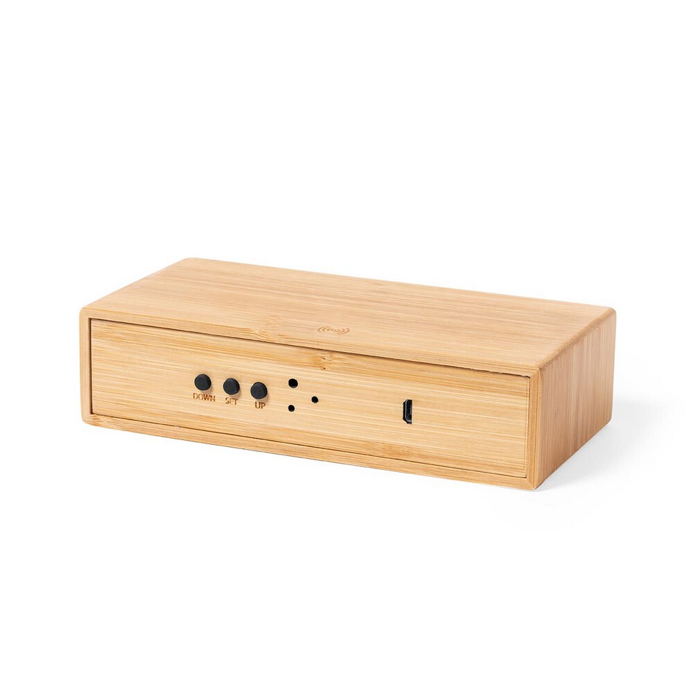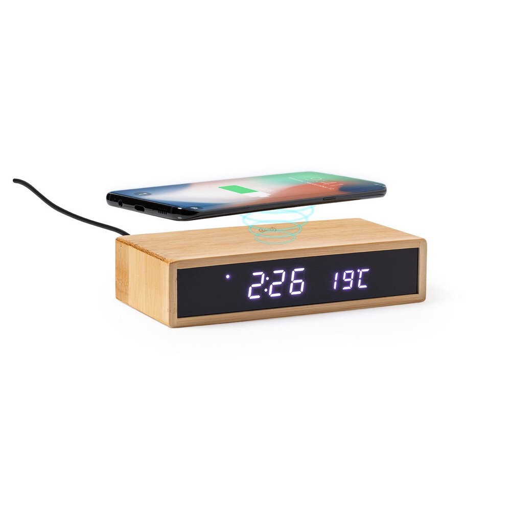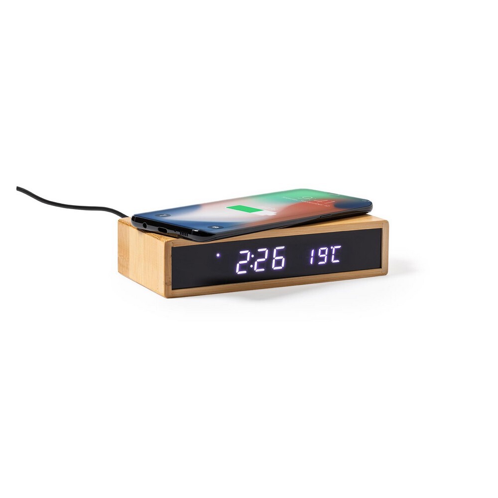 Bambusowa ładowarka bezprzewodowa 5W, wielofunkcyjny zegar / Jasnobrązowy