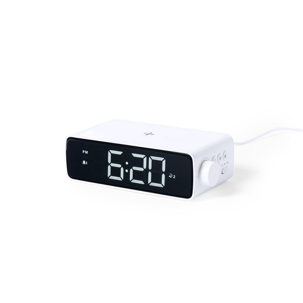 Ładowarka bezprzewodowa 10W, wielofunkcyjny zegar / Biały