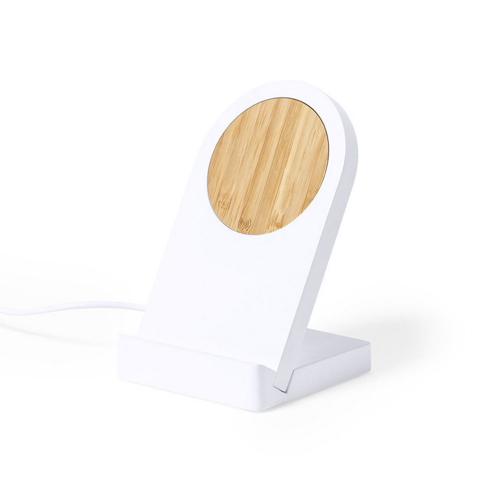 Magnetyczna bambusowa ładowarka bezprzewodowa 10W, stojak na telefon / Biały