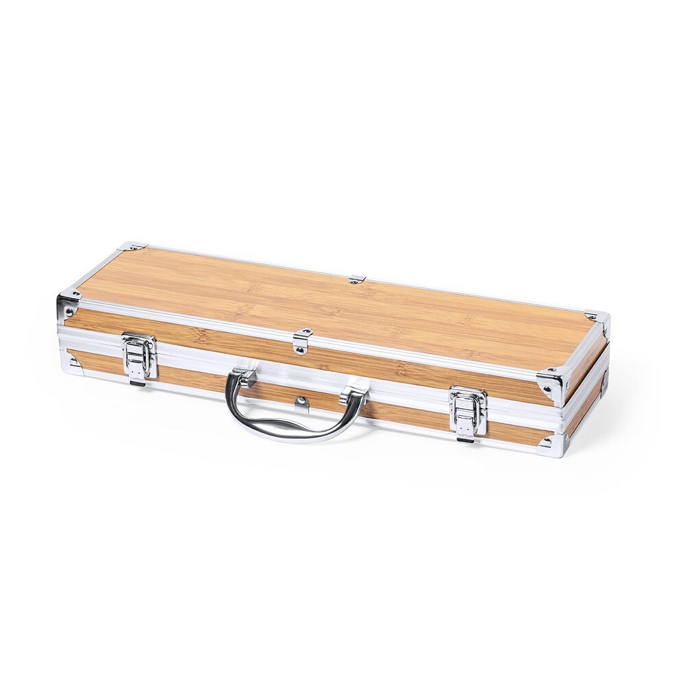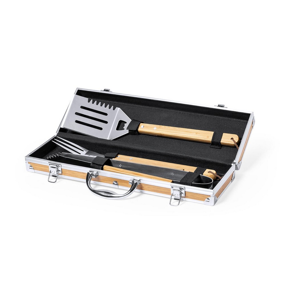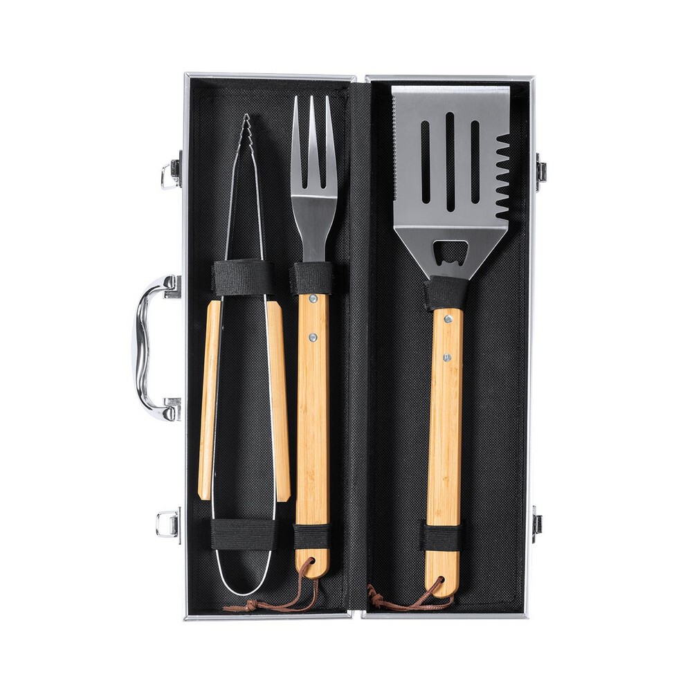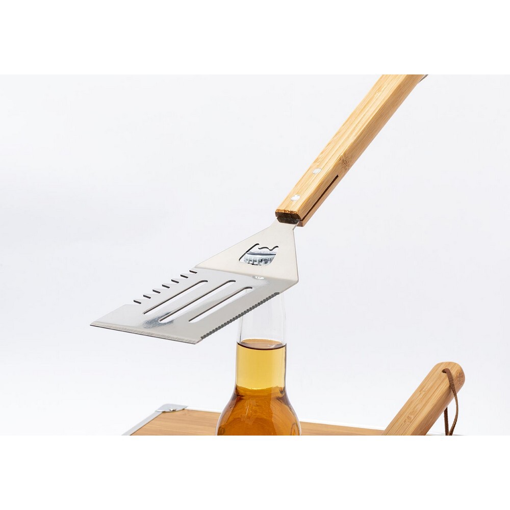 Bambusowy zestaw do grilla, 3 elementy wykonane z bambusa i stali nierdzewnej w bambusowym pudełku