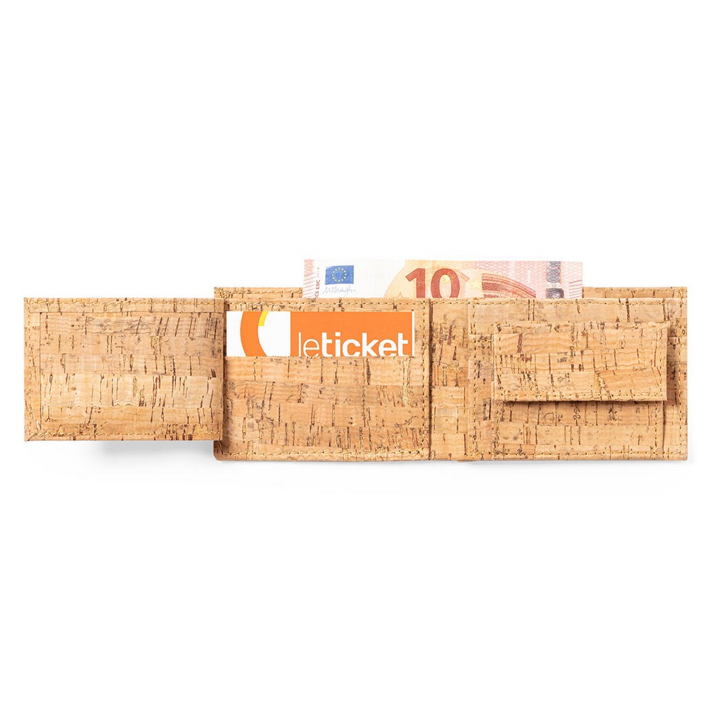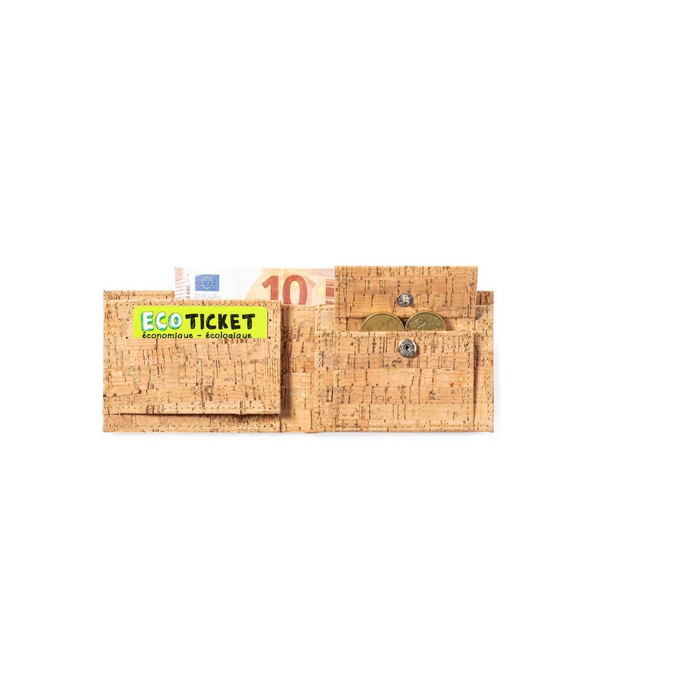 Korkowy portfel, przegroda na banknoty i karty kredytowe, kieszeń na bilon