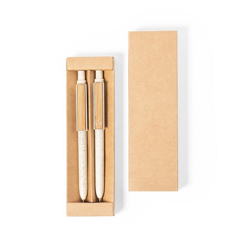 Zestaw piśmienny ze słomy pszenicznej w etui, długopis, ołówek mechaniczny (wkład 0,5 mm), bambusowe klipsy