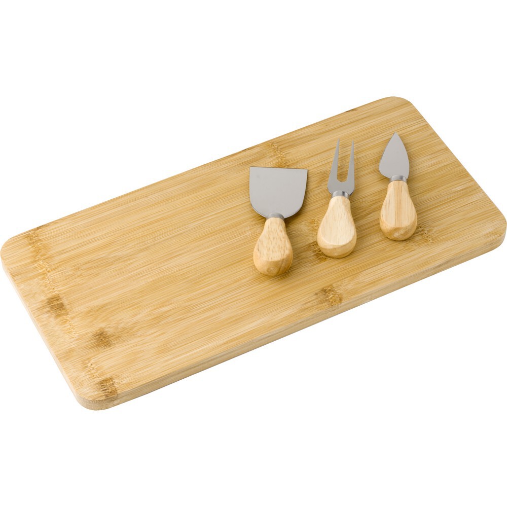 Zestaw do sera, bambusowa deska do sera, nóż, widelec i łopatka do sera, pakowany w kartonowe pudełko