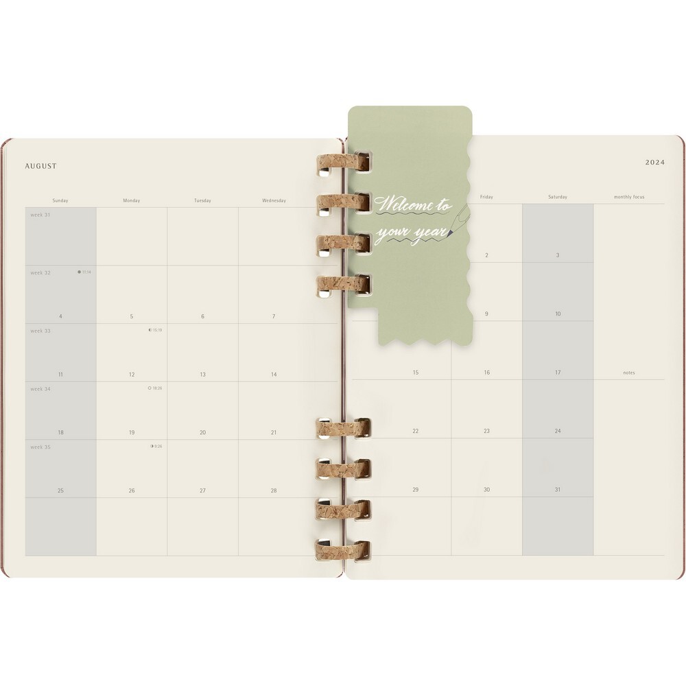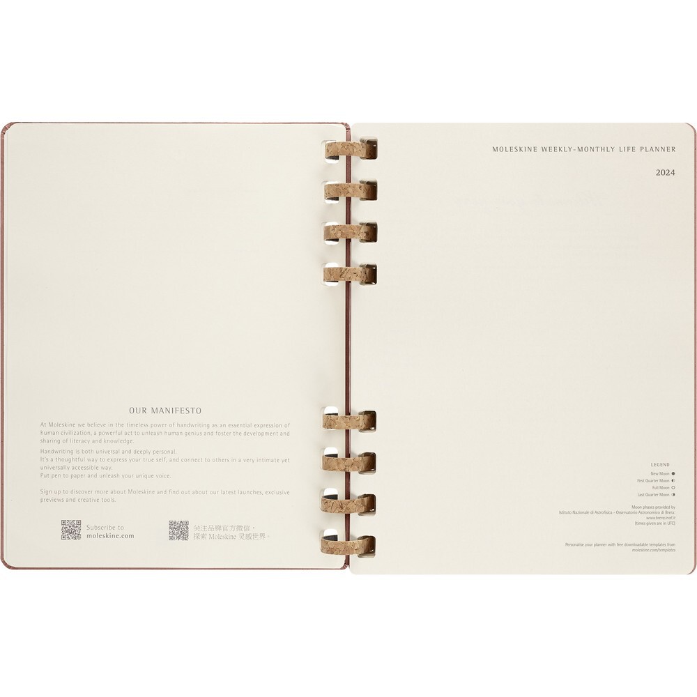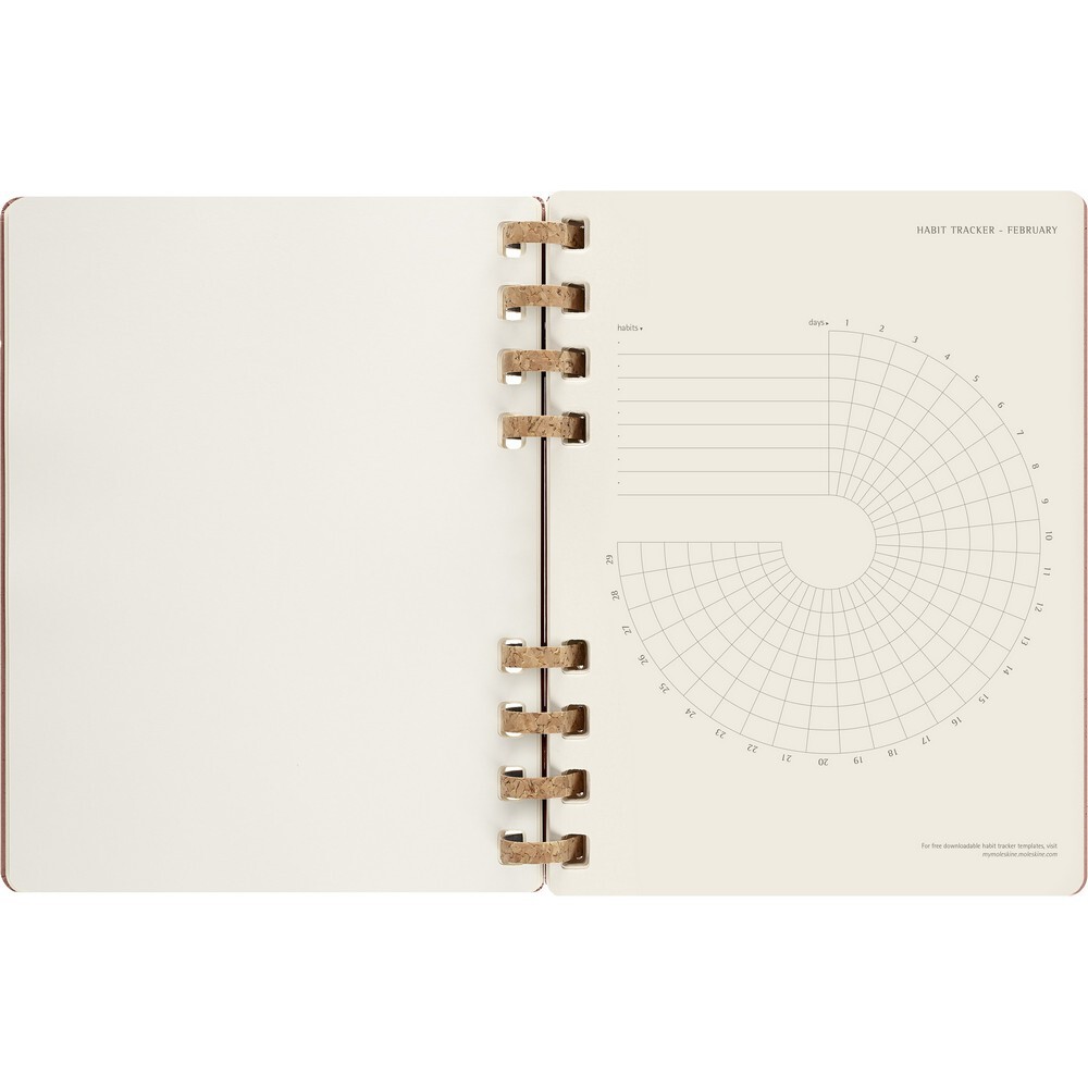 Spiralny kalendarz XL (ok. B5) MOLESKINE Solar, twarda okładka, układ miesięczny oraz tygodniowy-horyzontalny (200 str.), elastyczna opaska do zamykania