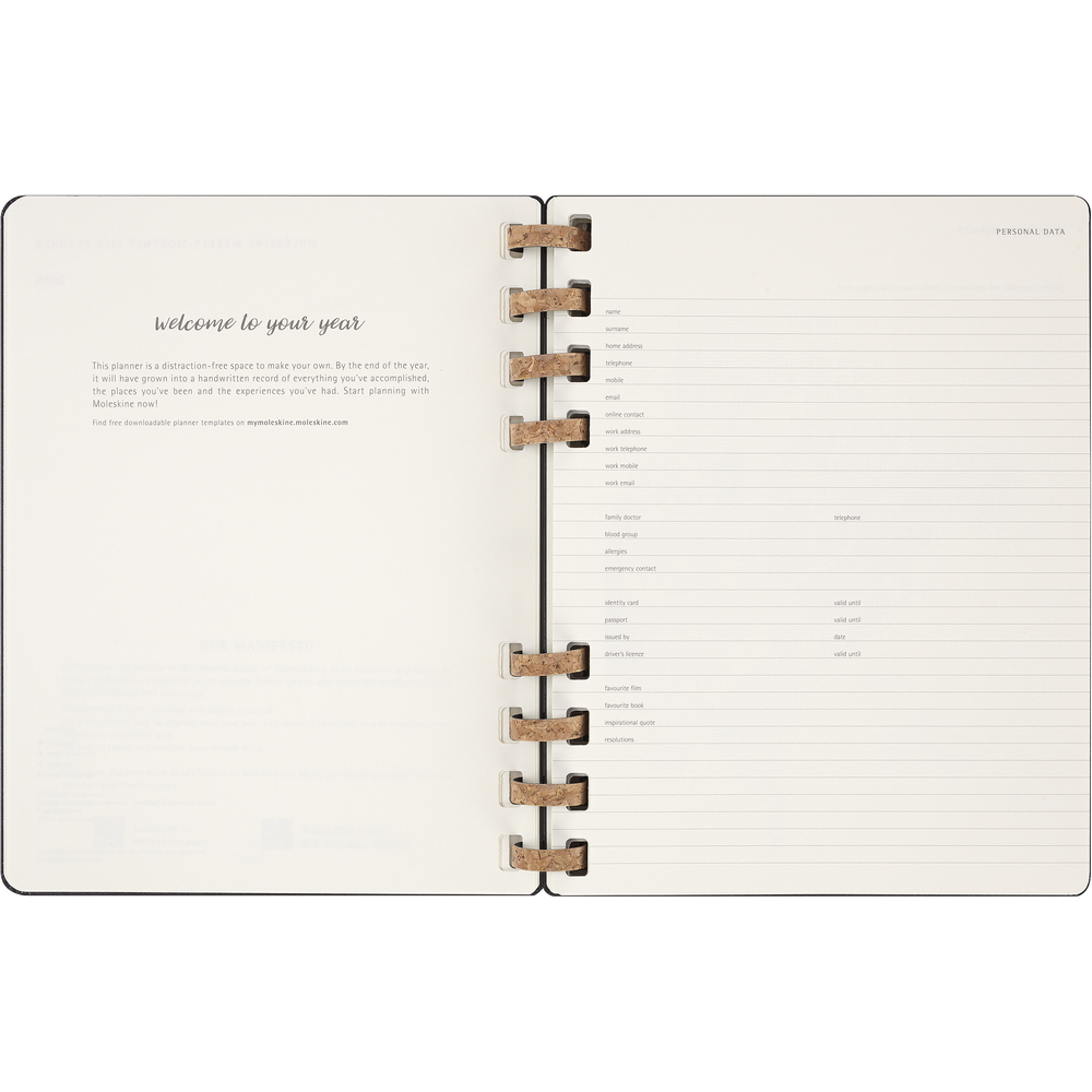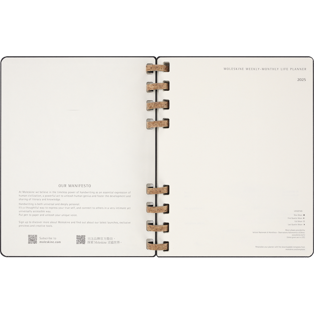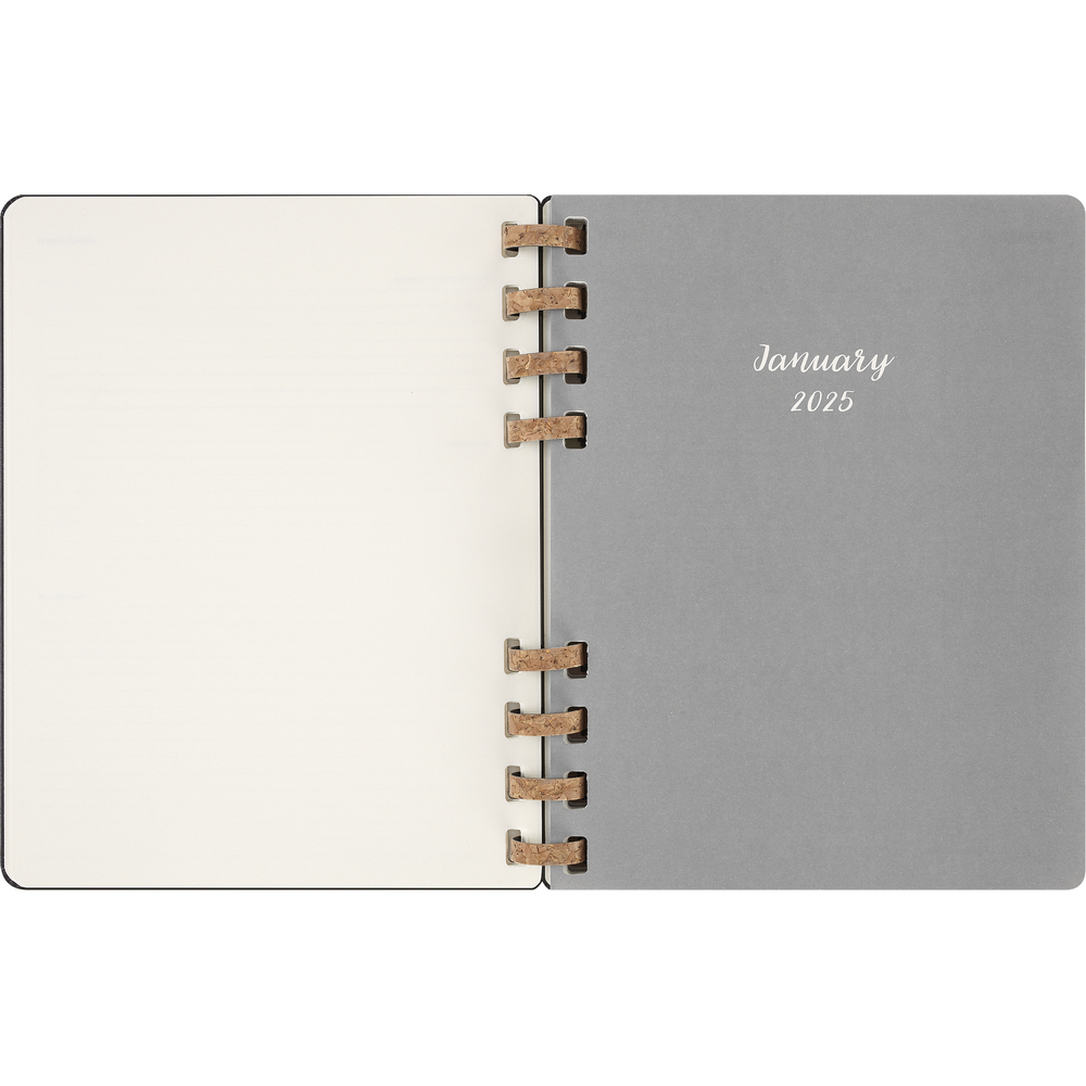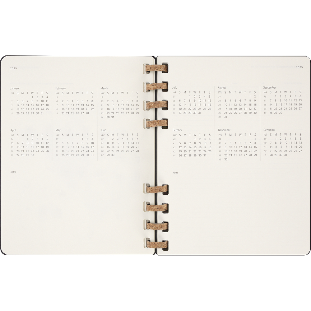 Spiralny kalendarz XL (ok. B5) MOLESKINE Solar, twarda okładka, układ miesięczny oraz tygodniowy-horyzontalny (200 str.), elastyczna opaska do zamykania
