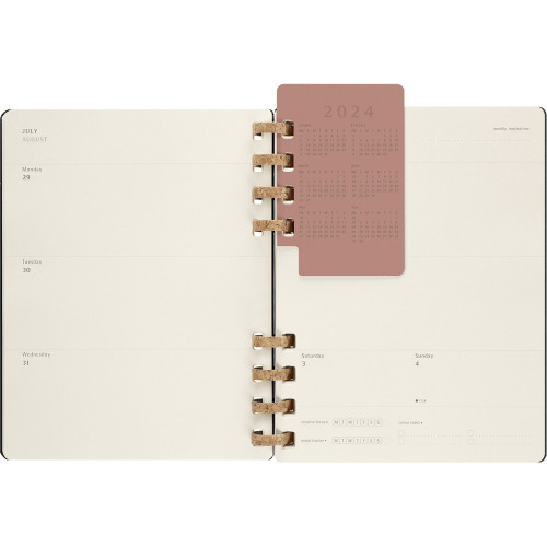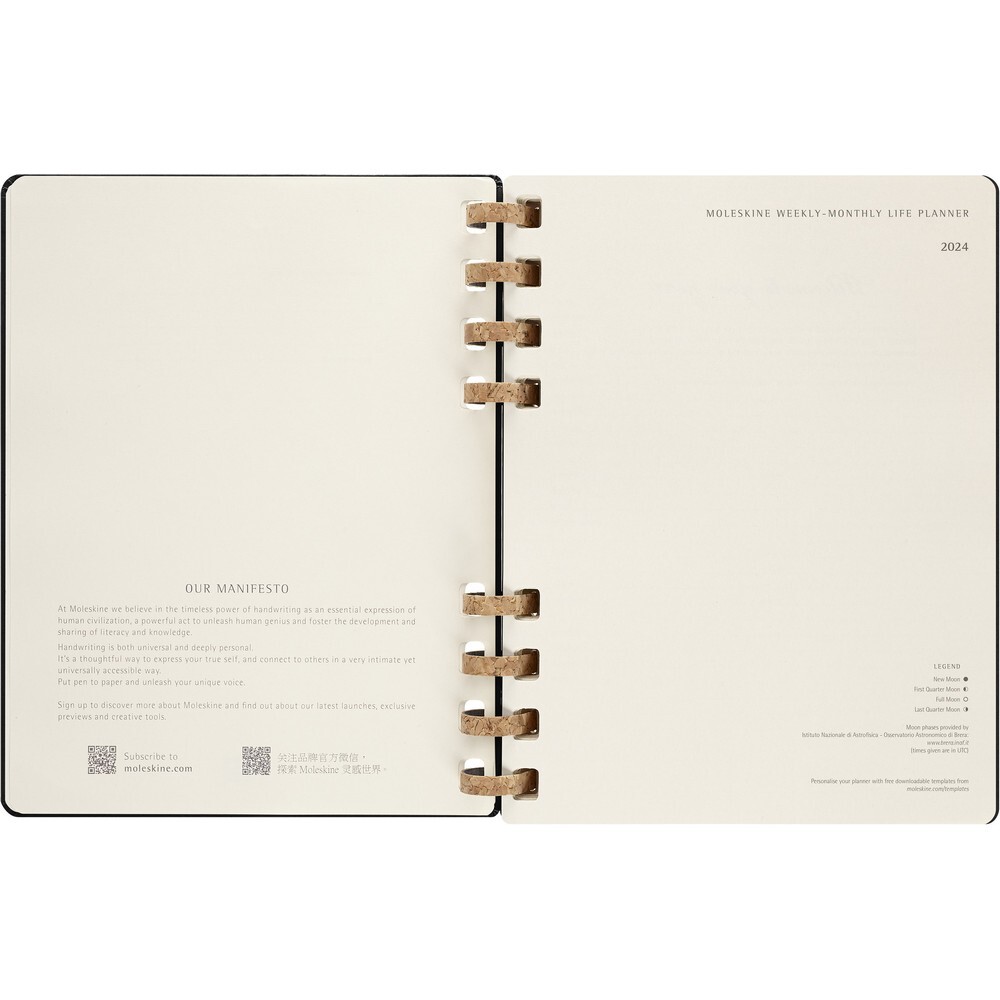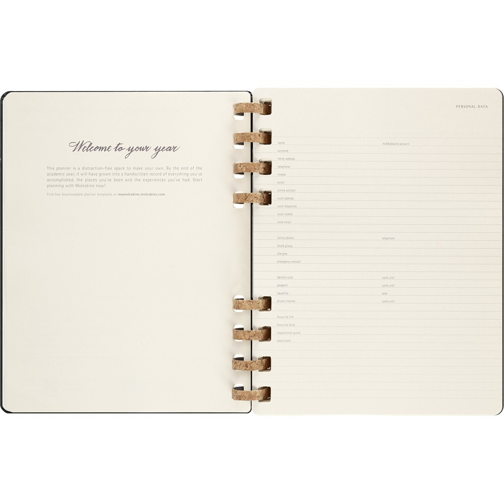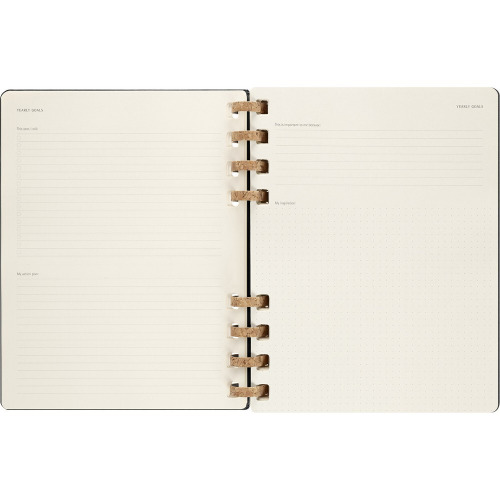 Spiralny kalendarz XL (ok. B5) MOLESKINE Solar, twarda okładka, układ miesięczny oraz tygodniowy-horyzontalny (200 str.), elastyczna opaska do zamykania