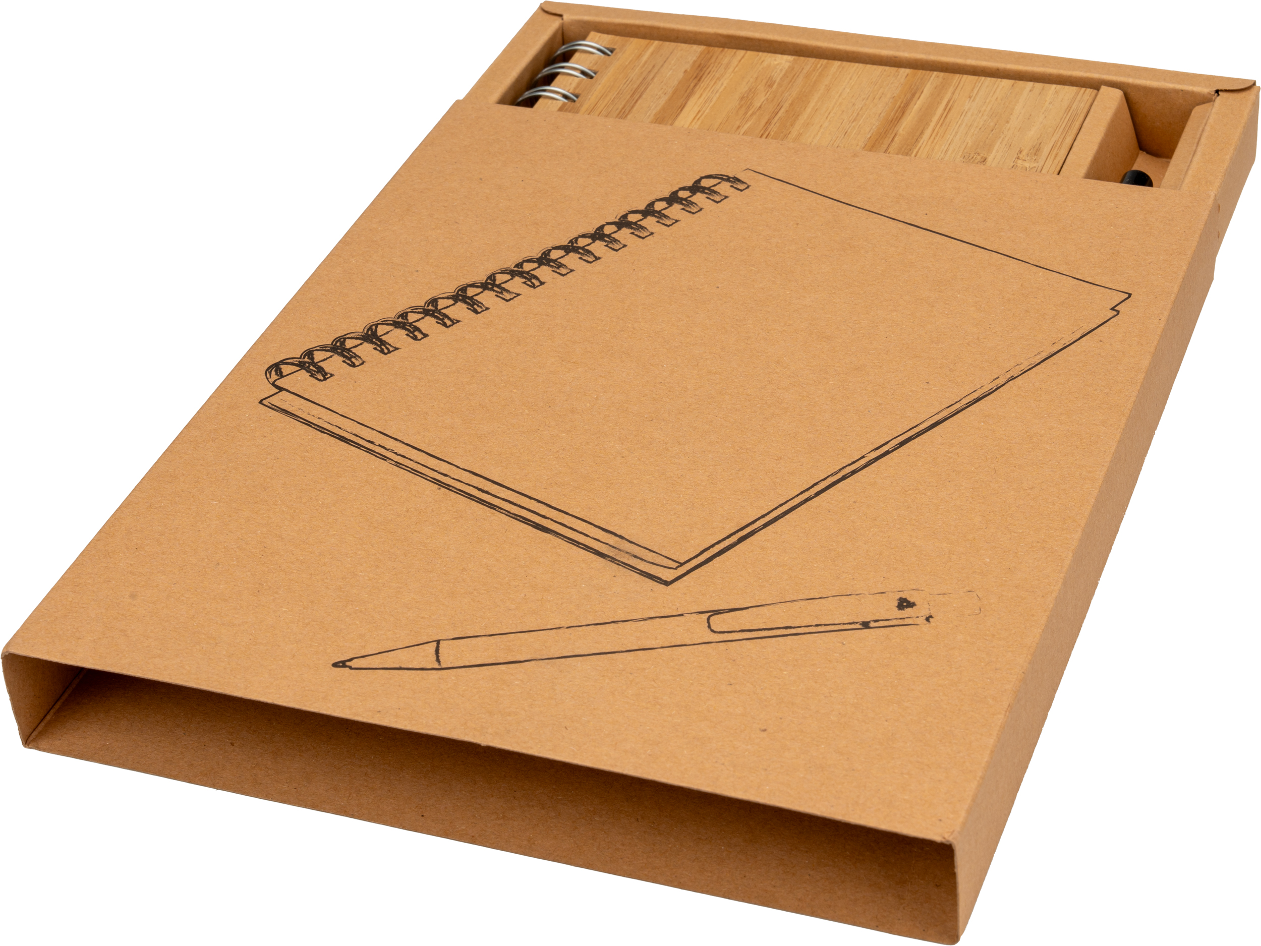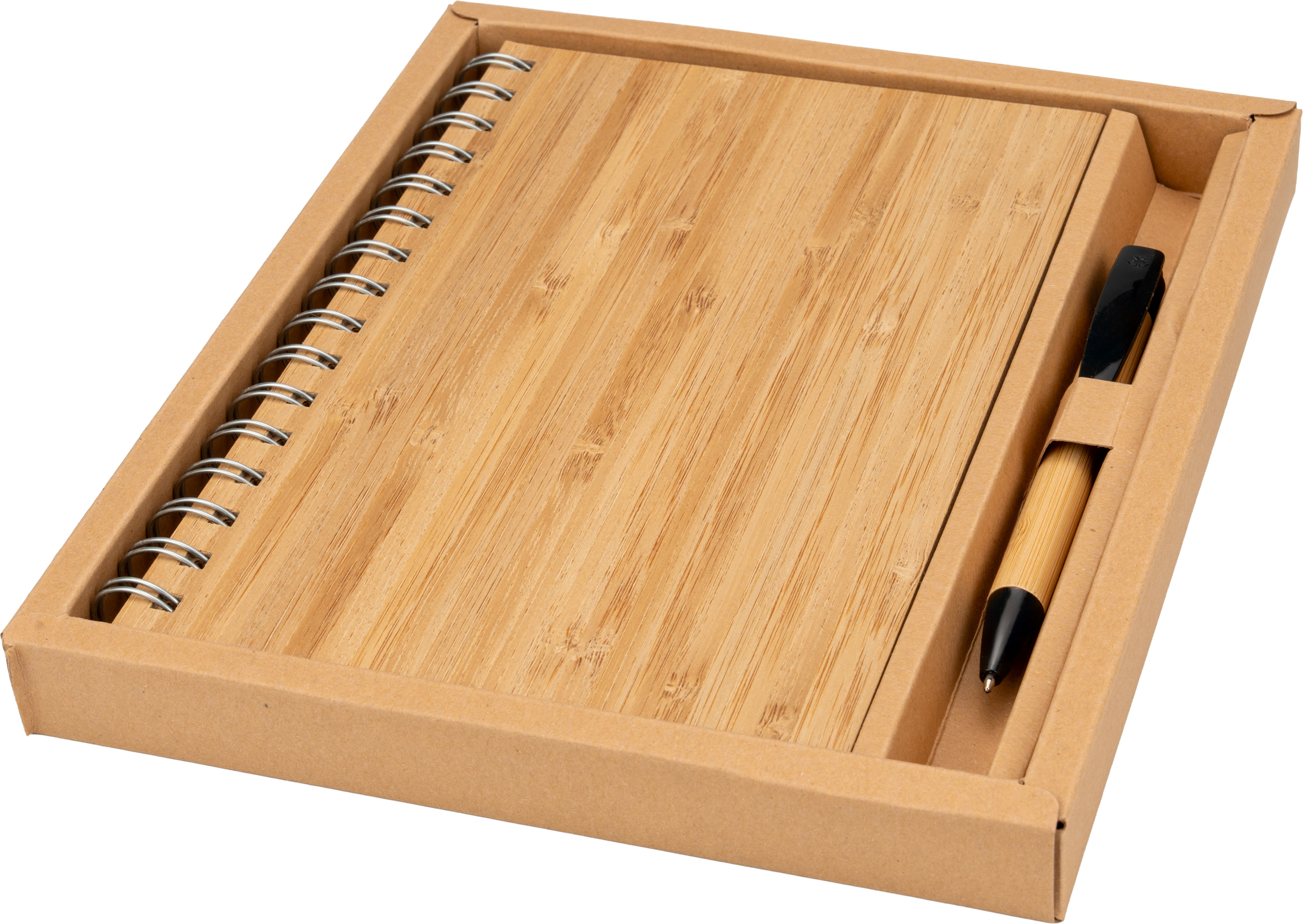 Notes A5 PISA to stylowy zestaw stworzony z myślą o osobach, które cenią zarówno estetykę, jak i dbałość o środowisko. W komplecie znajduje się elegancki notes w formacie A5 z okładką wykonaną z naturalnego bambusa oraz 160 stronami w linie. Papier użyty w notesie pochodzi z recyklingu, co czyni go przyjaznym dla planety wyborem.Do zestawu dołączony jest bambusowy długopis z niebieskim wkładem, który idealnie komponuje się z notesem i zapewnia komfort pisania. Całość zapakowana jest w kartonowe pudełko, dzięki czemu zestaw świetnie sprawdzi się także jako upominek.Minimalistyczna forma i naturalne materiały nadają całości wyjątkowego charakteru i sprawiają, że zestaw idealnie sprawdzi się w biurze.