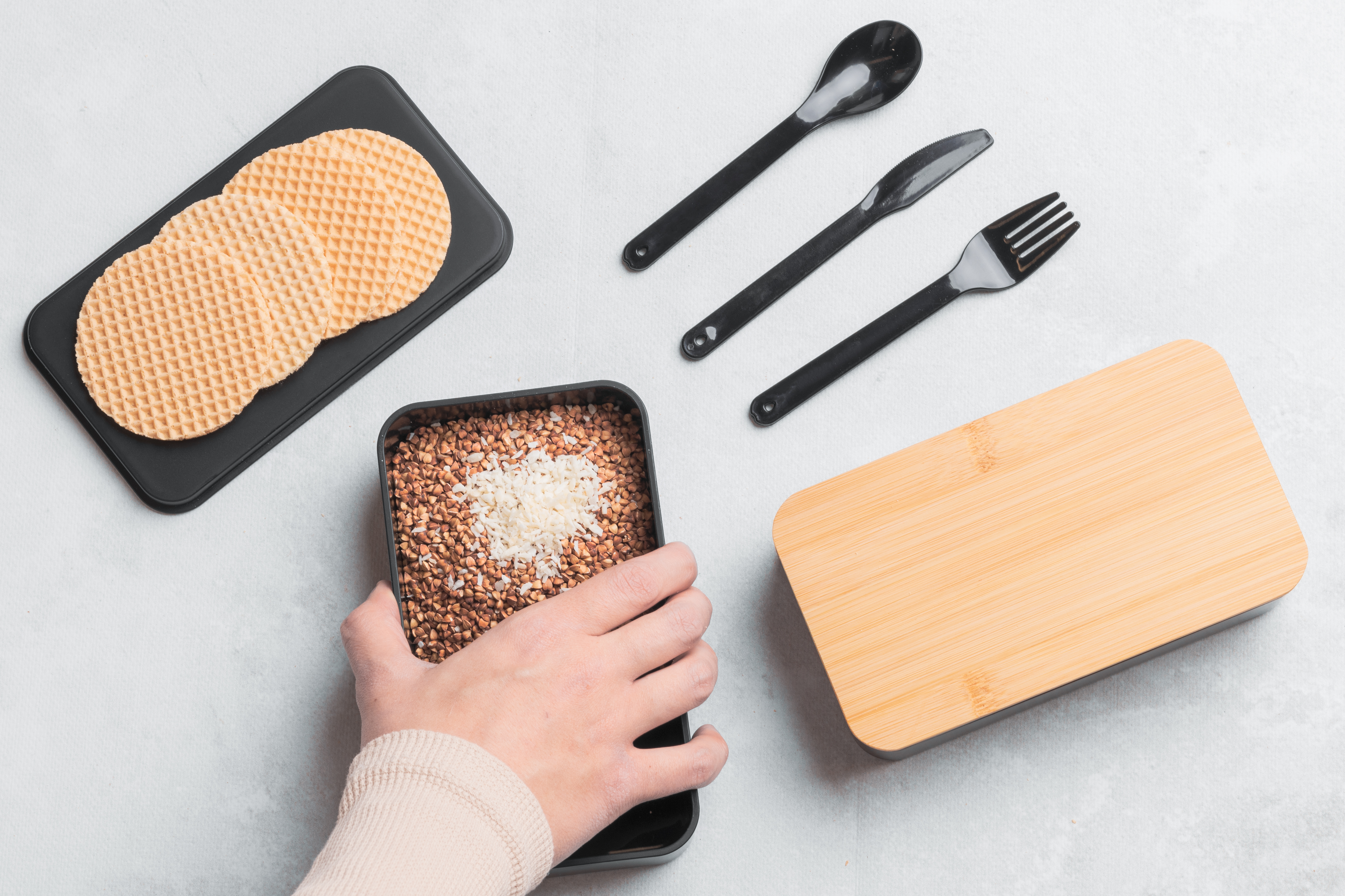 Lunchbox łączy funkcjonalność, wygodę i elegancję, aby umożliwić Ci smaczne i zdrowe posiłki w podróży. Ten lunchbox został zaprojektowany z myślą o praktyczności i wszechstronności. Jego pojemność to 600 ml (2x300 ml), posiada również dwupoziomową konstrukcję z dwiema osobnymi przegrodami, każda z własną przykrywką, co pozwala na przechowywanie różnych potraw bez obawy o ich mieszanie się. Dodatkowo, pudełko wyposażone jest w bambusową pokrywkę oraz przekładkę, umożliwiającą oddzielanie poszczególnych części posiłku w obrębie jednej przegrody. Bambusowa pokrywka może również pełnić rolę deseczki do krojenia lub outdoorowego talerzyka, co dodatkowo zwiększa funkcjonalność lunchboxa. W zestawie znajdziesz również praktyczne sztućce do jedzenia - nóż, widelec i łyżkę, które ułatwią Ci spożywanie posiłków w dowolnym miejscu. Dodatkowo, szeroka gumka zespaja wszystkie elementy lunchboxa, zapewniając bezpieczne przechowywanie i transport. Wykonany z nieszkodliwych materiałów, lunchbox jest bezpieczny do przechowywania wszelkiego rodzaju żywności w formie stałej. To doskonały wybór dla osób dbających o zdrowy styl życia i szukających praktycznych rozwiązań do codziennego użytku.