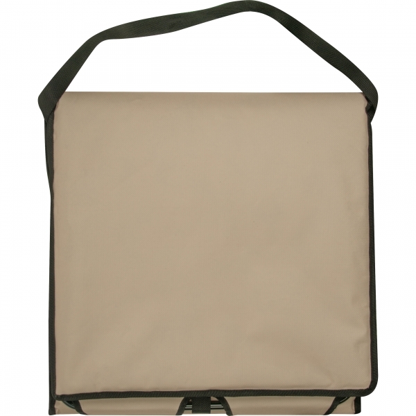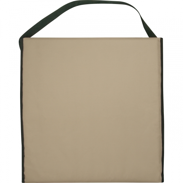 Mata plażowa wykonana z poliestru, z metalową ramą stanowiącą podparcie dla pleców lub głowy.