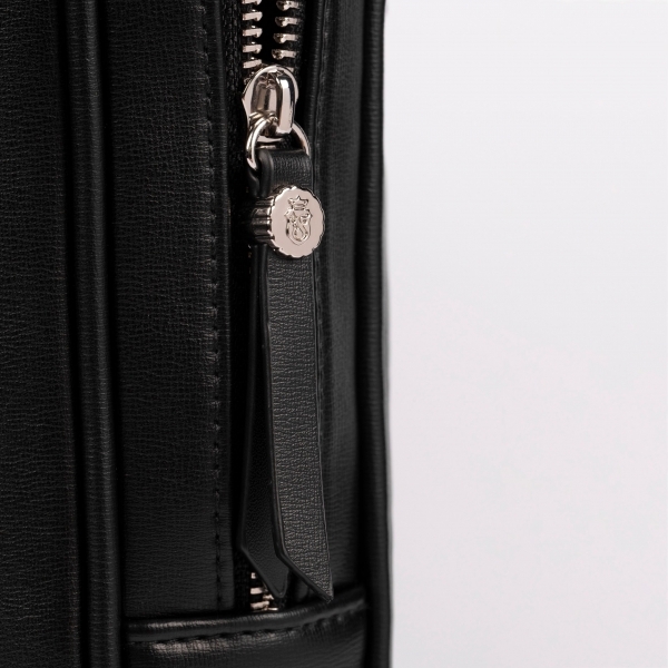 Festina „Classicals” to kultowa linia produktów. Każdy szczegół został starannie zaprojektowany i wykonany w celu zaoferowania praktycznego, luksusowego i łatwego w noszeniu akcesorium, które będzie idealnym towarzyszem w podróży lub w pracy. Produkt jest wykonany z pięknie teksturowanej skóry (PU). Każdy produkt jest sygnowany kultową tłoczoną tabliczką z literką „F”. Zamek błyskawiczny opatrzony logo Festina i torba przyozdobiona skórką dają wrażenie luksusu. Wnętrze z elegancką podszewką i zapinaną na zamek przegrodą zostało starannie zaprojektowane i pozwala na idealną organizację torby. Torba ta jest bardzo pojemna, posiada dwie oddzielne przegrody zapinane na zamek, które pozwalają na optymalną organizację codziennych drobiazgów. W zestawie z odpinanym paskiem umożliwiającym noszenie torby przez ramię. Specjalny pasek z tyłu sprawia, że bardzo łatwo przymocować go do wózka podczas podróży. Ta czarna wersja z wyraźnymi chromowanymi metalowymi wykończeniami to prawdziwy klasyk.