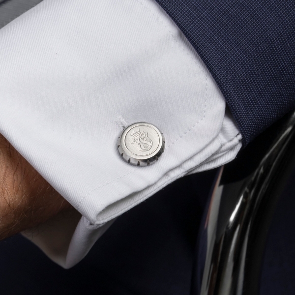 Nasze spinki do mankietów „Chronobike” są inspirowane kultowym przyciskiem stop zegarka Festina i zdobione charakterystycznym logo. Wykonane są ze stali nierdzewnej. Ta błyszcząca chromowana wersja wykończona jest czarną emalią. To ponadczasowy klasyk.