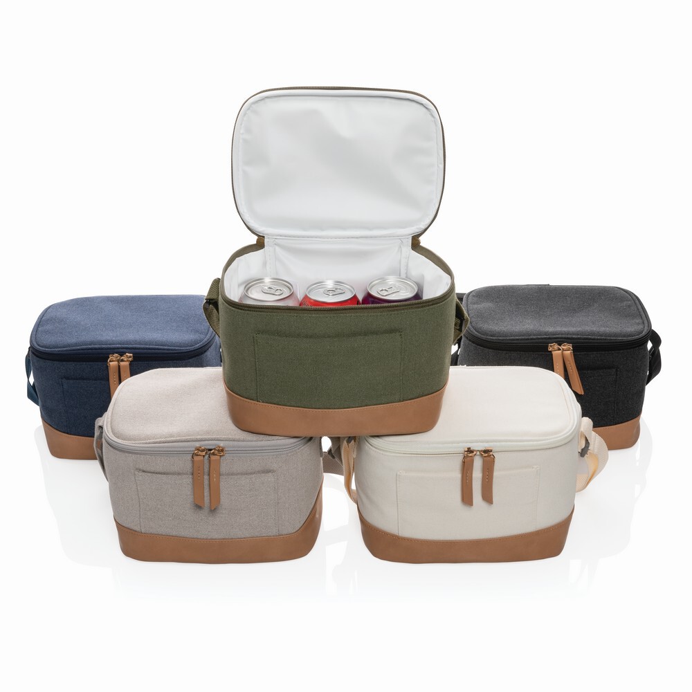 Torba termoizolacyjna, kieszeń z przodu, pojemność torby do 6 puszek 0,33 l, detale z PU, wnętrze z PEVA, na zewnątrz mieszanka 60% bawełny oraz 40% poliestru z recyklingu dzięki czemu każda torba pozwala zaoszczędzić 506,2 l wody, dzięki zastosowaniu technologii śledzącej AWARE™ wykorzystane włókna są identyfikowalne z pochodzenia, 2% wpływów z każdego sprzedanego produktu z kolekcji Impact jest przekazywane na rzecz Water.org