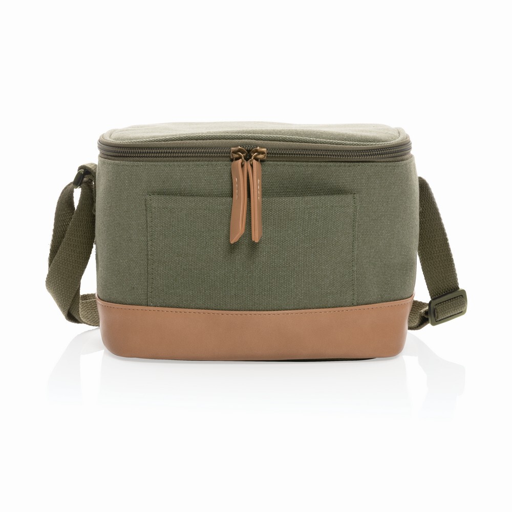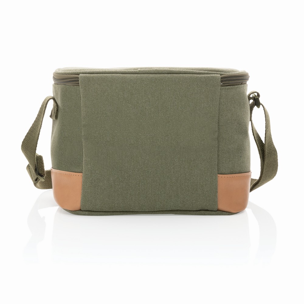 Torba termoizolacyjna, kieszeń z przodu, pojemność torby do 6 puszek 0,33 l, detale z PU, wnętrze z PEVA, na zewnątrz mieszanka 60% bawełny oraz 40% poliestru z recyklingu dzięki czemu każda torba pozwala zaoszczędzić 506,2 l wody, dzięki zastosowaniu technologii śledzącej AWARE™ wykorzystane włókna są identyfikowalne z pochodzenia, 2% wpływów z każdego sprzedanego produktu z kolekcji Impact jest przekazywane na rzecz Water.org