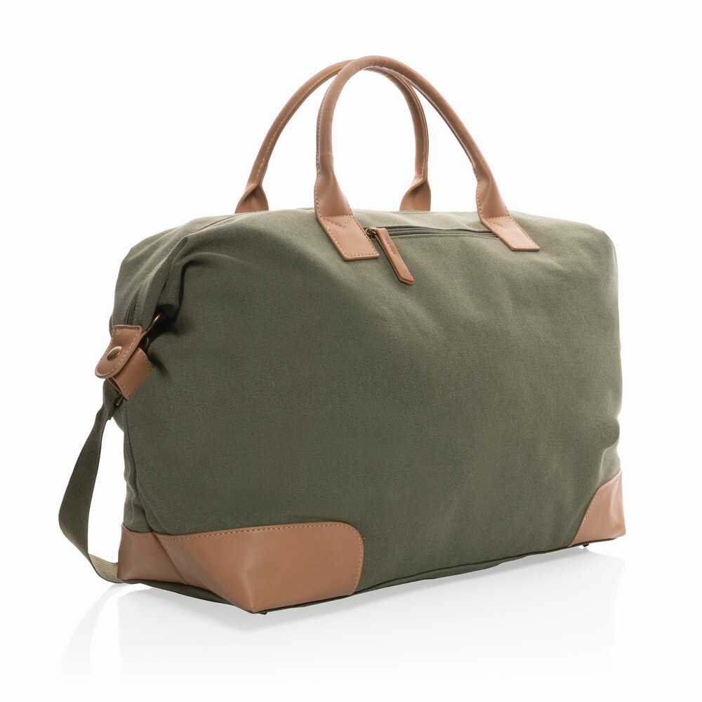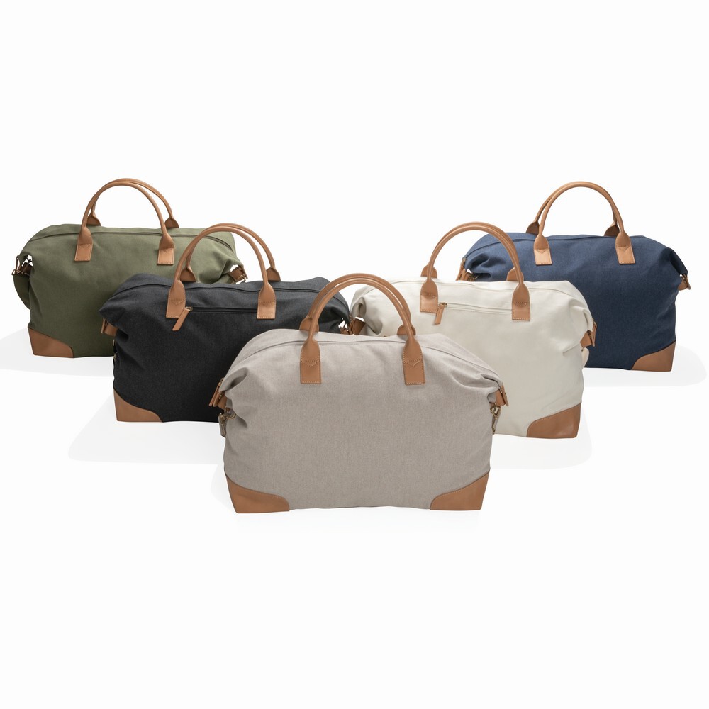 Torba sportowa, podróżna, przestronna przegroda główna, kieszeń z przodu, uchwyty z PU, mosiężne nóżki na spodzie, wykonana z mieszanki 60% bawełny z recyklingu i 40% poliestru z recyklingu dzięki czemu zaoszczędzone zostało 1970 l wody, dzięki zastosowaniu technologii śledzącej AWARE™ wykorzystane włókna są identyfikowalne z pochodzenia, 2% wpływów z każdego sprzedanego produktu z kolekcji Impact jest przekazywane na rzecz Water.org