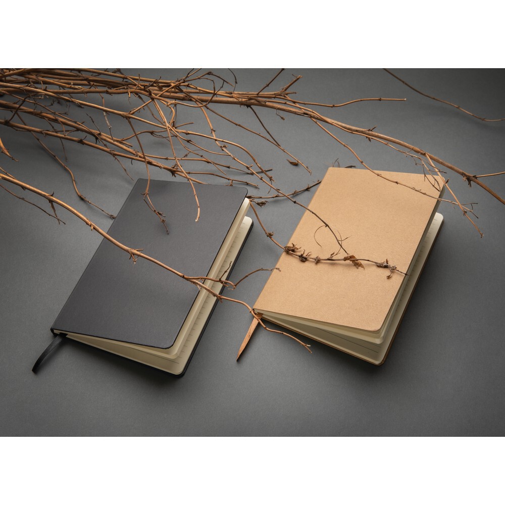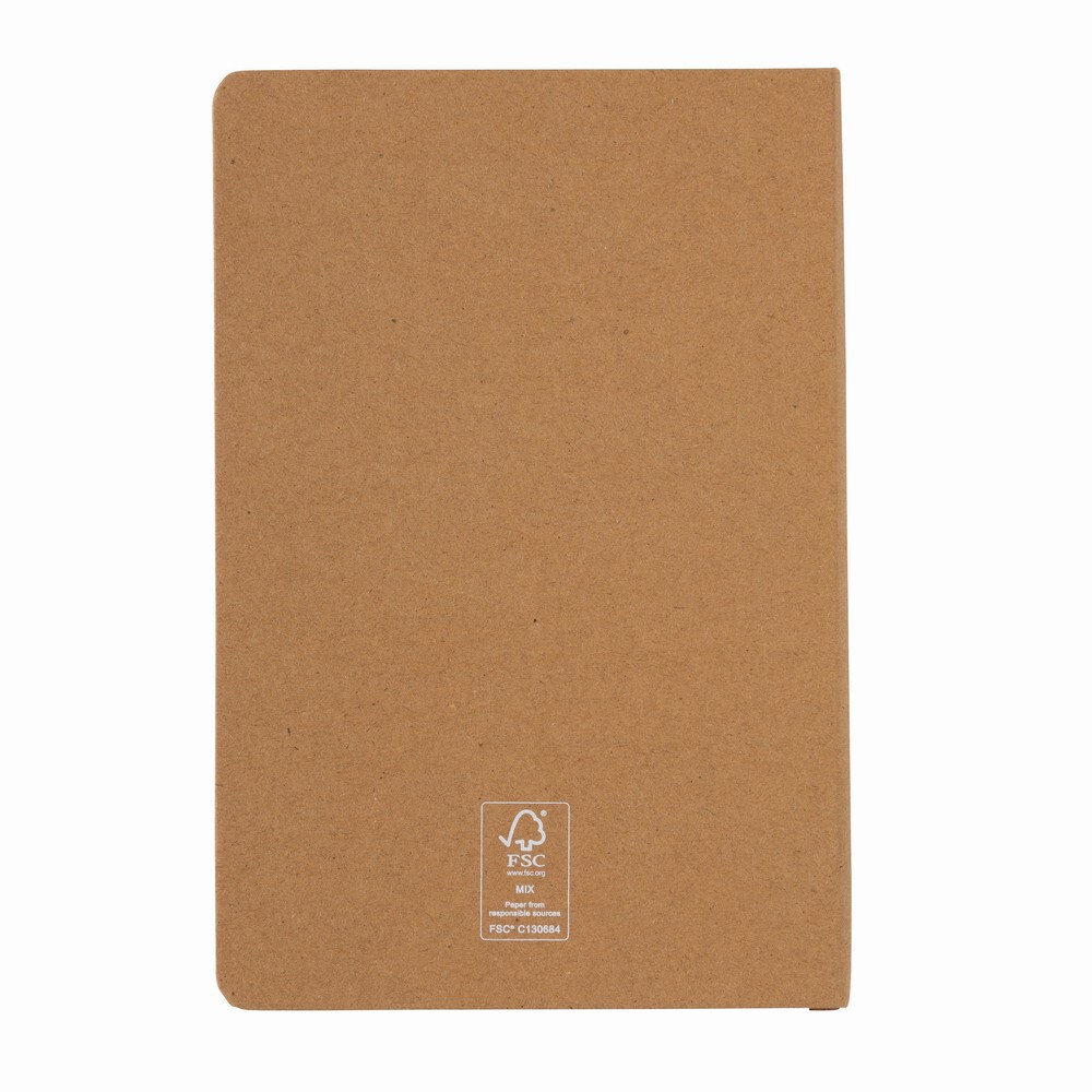 Notatnik A5, (80 kremowych kartek w linie), twarda okładka, okładka oraz strony wewnętrzne posiadają certyfikat FSC® (Forest Stewardship Council), tasiemka zakładkowa i elastyczna pętla na długopis