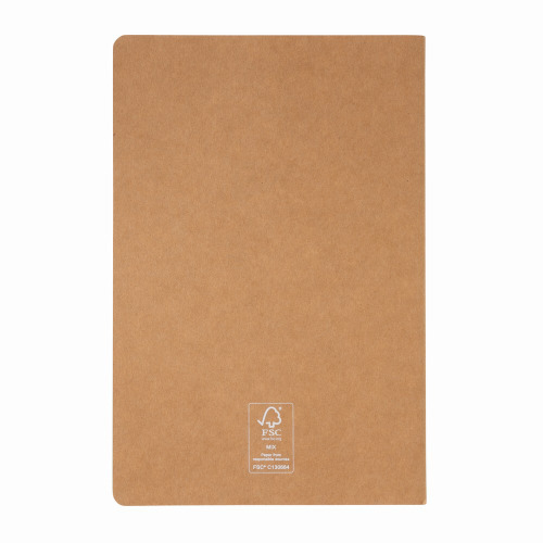 Notatnik A5, (46 kremowych kartek w linie), miękka okładka, okładka oraz strony wewnętrzne posiadają certyfikat FSC® (Forest Stewardship Council), tasiemka zakładkowa i elastyczna pętla na długopis