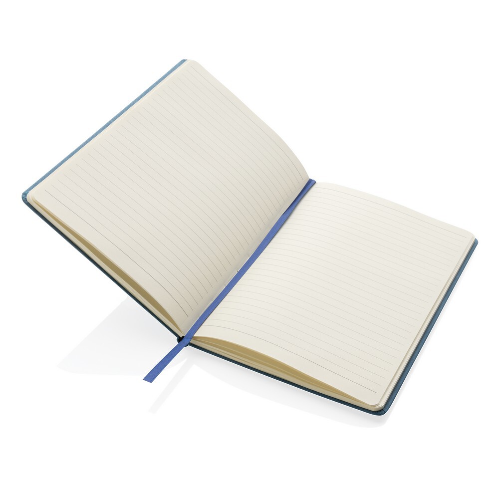 Notatnik A5, (80 kremowych kartek w linie), twarda okładka, okładka oraz strony wewnętrzne posiadają certyfikat FSC® (Forest Stewardship Council), tasiemka zakładkowa i elastyczna pętla na akcesoria do pisania