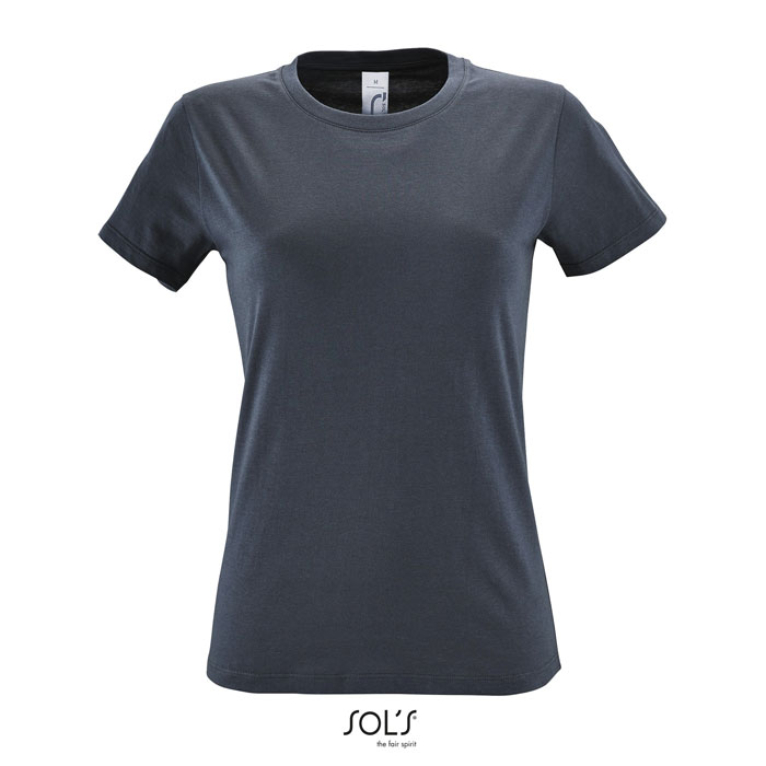 Damska koszulka SOL'S REGENT z dzianiny single jersey o nowoczesnym, dopasowanym kroju. Wzmocniony szew przy dekolcie, prążkowany kołnierz, szew boczny. Materiał : single jersey 150g / m², 100% bawełna typu ring-spun. OEKO-TEX. Rozmiar: XS-XXL.