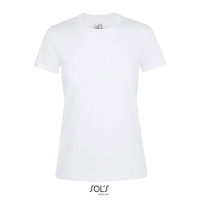 Damska koszulka SOL'S REGENT z dzianiny single jersey o nowoczesnym, dopasowanym kroju. Wzmocniony szew przy dekolcie, prążkowany kołnierz, szew boczny. Materiał : single jersey 150g / m², 100% bawełna typu ring-spun. OEKO-TEX. Rozmiar: XS-XXL.
