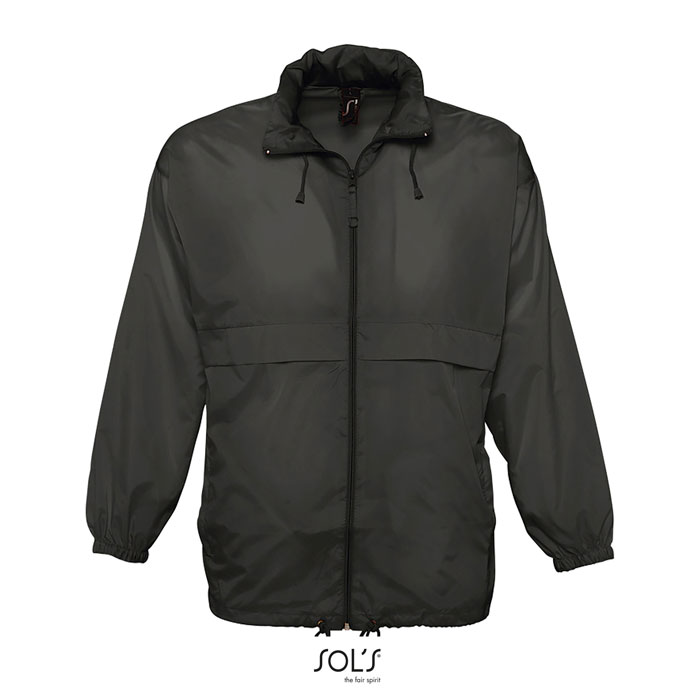 SOL'S SURF Wiatrówka unisex z zamkiem błyskawicznym. Jedna z najbardziej opłacalnych wiatrówek na rynku. Wiatroodporna i wodoodporna. Dwie zapinane kieszenie, kołnierz zapinany na zamek z ukrytym w środku kapturem. Sznurek u dołu, elastyczne mankiety, otwory wentylacyjne. Detale tkaniny: 100% nylon 210T 210 g / m², wodoodporny.