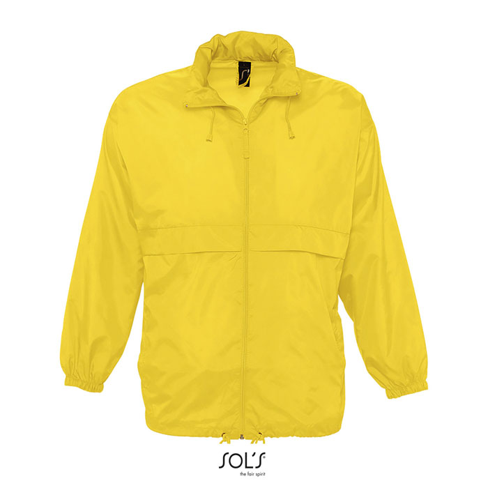 SOL'S SURF Wiatrówka unisex z zamkiem błyskawicznym. Jedna z najbardziej opłacalnych wiatrówek na rynku. Wiatroodporna i wodoodporna. Dwie zapinane kieszenie, kołnierz zapinany na zamek z ukrytym w środku kapturem. Sznurek u dołu, elastyczne mankiety, otwory wentylacyjne. Detale tkaniny: 100% nylon 210T 210 g / m², wodoodporny.