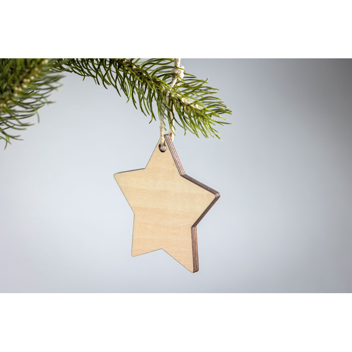Ozdoba świąteczna ze sklejki, z jutowym sznurkiem, do sublimacji, w kształcie gwiazdki. Biały nadruk nie jest możliwy.