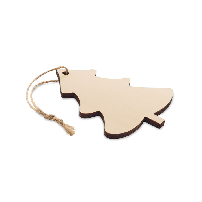 Ozdoba świąteczna ze sklejki, z jutowym sznurkiem, do sublimacji, w kształcie choinki. Biały nadruk nie jest możliwy.