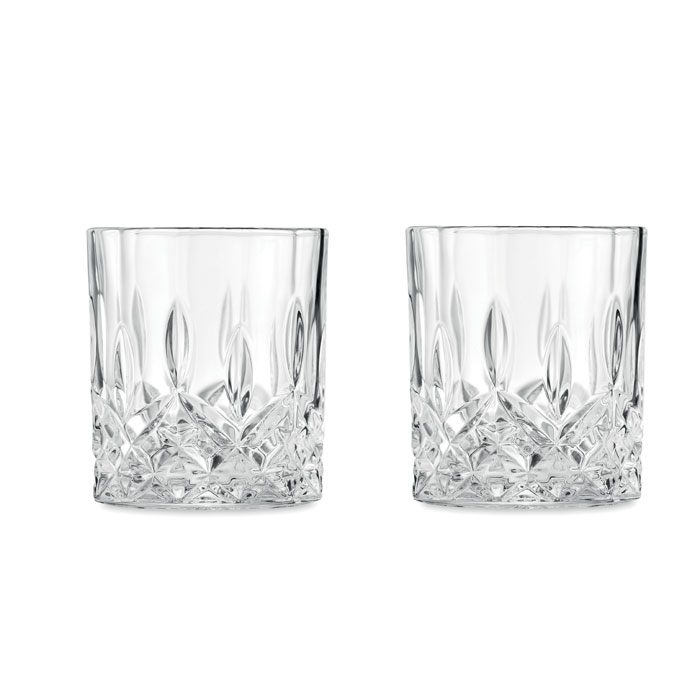 Luksusowy zestaw do whisky w drewnianej skrzynce. Zawiera szklaną karafkę (700 ml), 2 szklanki do whisky (300 ml), 6 kamiennych kostek lodu wielokrotnego użytku i szczypce.