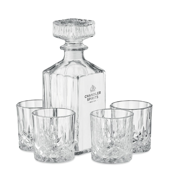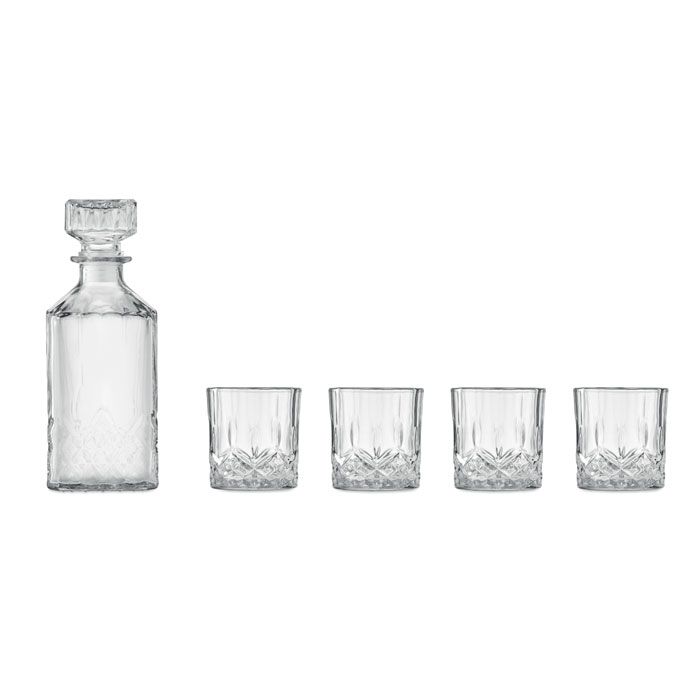 Luksusowy, szklany zestaw do drinków. Zawiera 4 szklanki (230 ml) i jedną karafkę (900 ml).