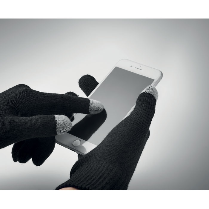 3-częściowy zestaw zimowy. Zawiera czapkę z materiału RPET, szalik i rękawiczki dotykowe z etykietą do nadruku.