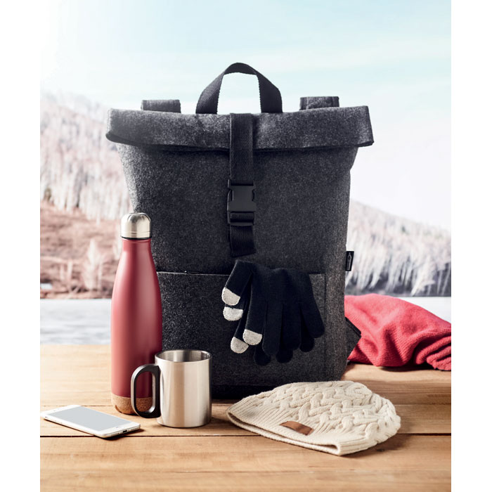Czapka z dzianiny RPET z etykietą do nadruku.