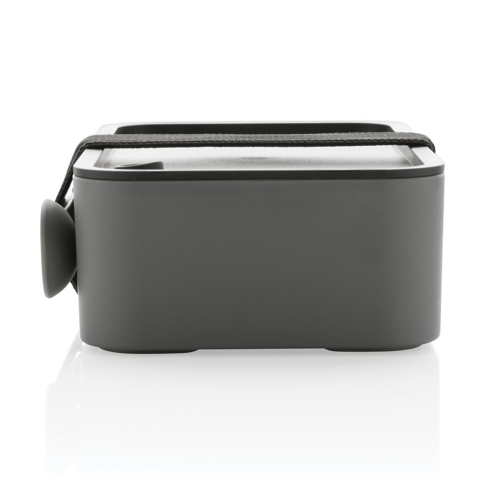 Pudełko śniadaniowe 1,2 L, lunchbox, wykonany w 93% z PP pochodzącego z recyklingu z certyfikatem GRS (Global Recycled Standard) który gwarantuje, że wykorzystane materiały pochodzą z recyklingu, w komplecie łyżkowidelec i elastyczny pasek, można myć w zmywarce i używać w kuchence mikrofalowej