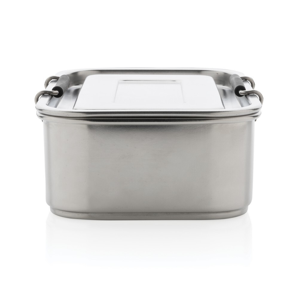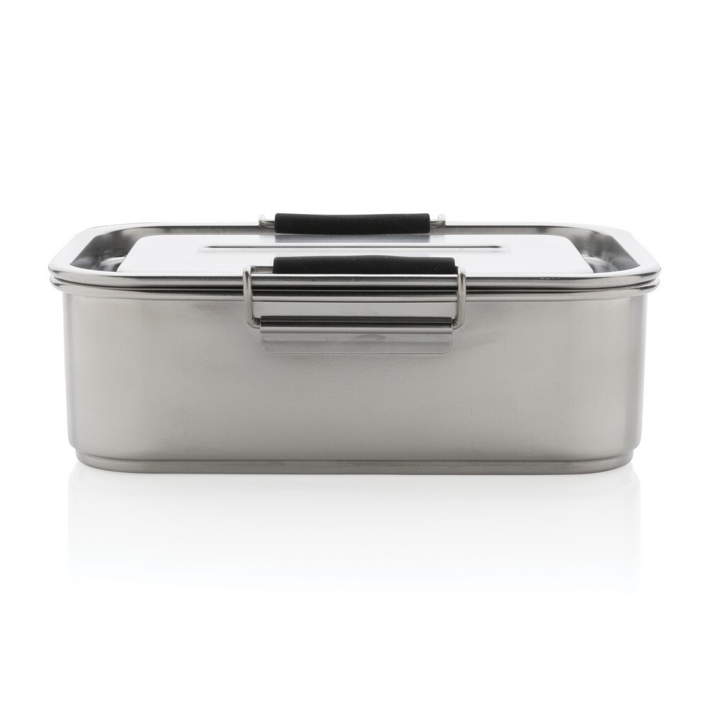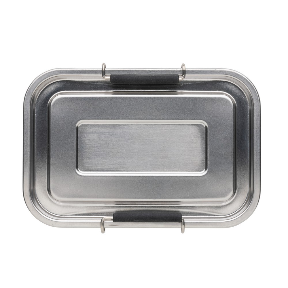 Pudełko śniadaniowe 1 L, lunchbox, zamykane na 2 zatrzaski, wewnątrz przegroda, solidne i szczelne, wykonane w 95% ze stali nierdzewnej z recyklingu, wykorzystane materiały posiadają certyfikat GRS (Global Recycled Standard) który gwarantuje, że wykorzystane materiały pochodzą z recyklingu, zawartość materiału z recyklingu jest obliczana w oparciu o wagę całkowitą przedmiotu, wyłącznie do zimnych potraw, nie należy używać w kuchence mikrofalowej i myć w zmywarce, w opakowaniu z papieru kraftowego z certyfikatem FSC® (Forest Stewardship Council)